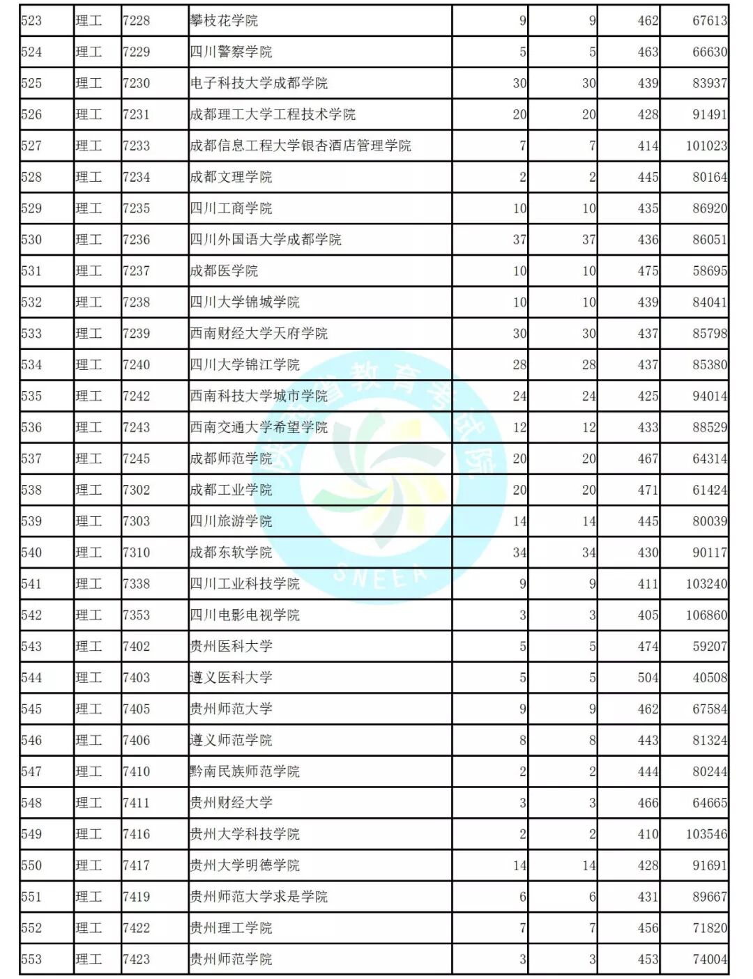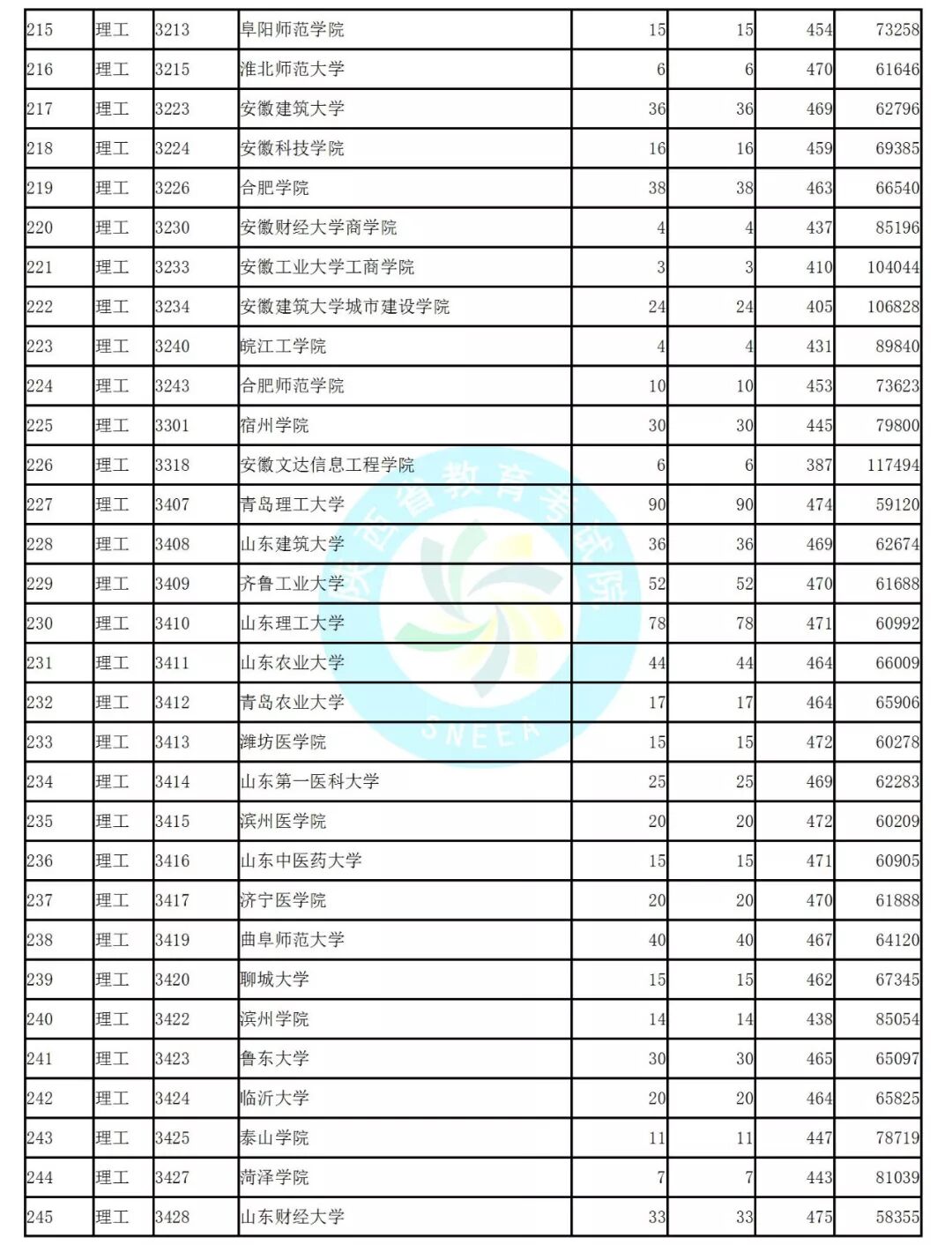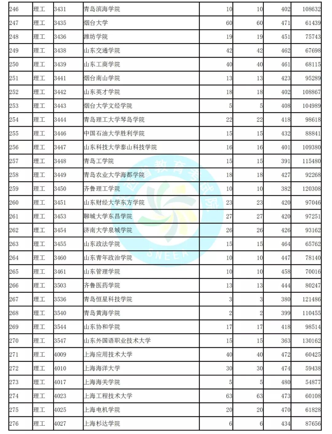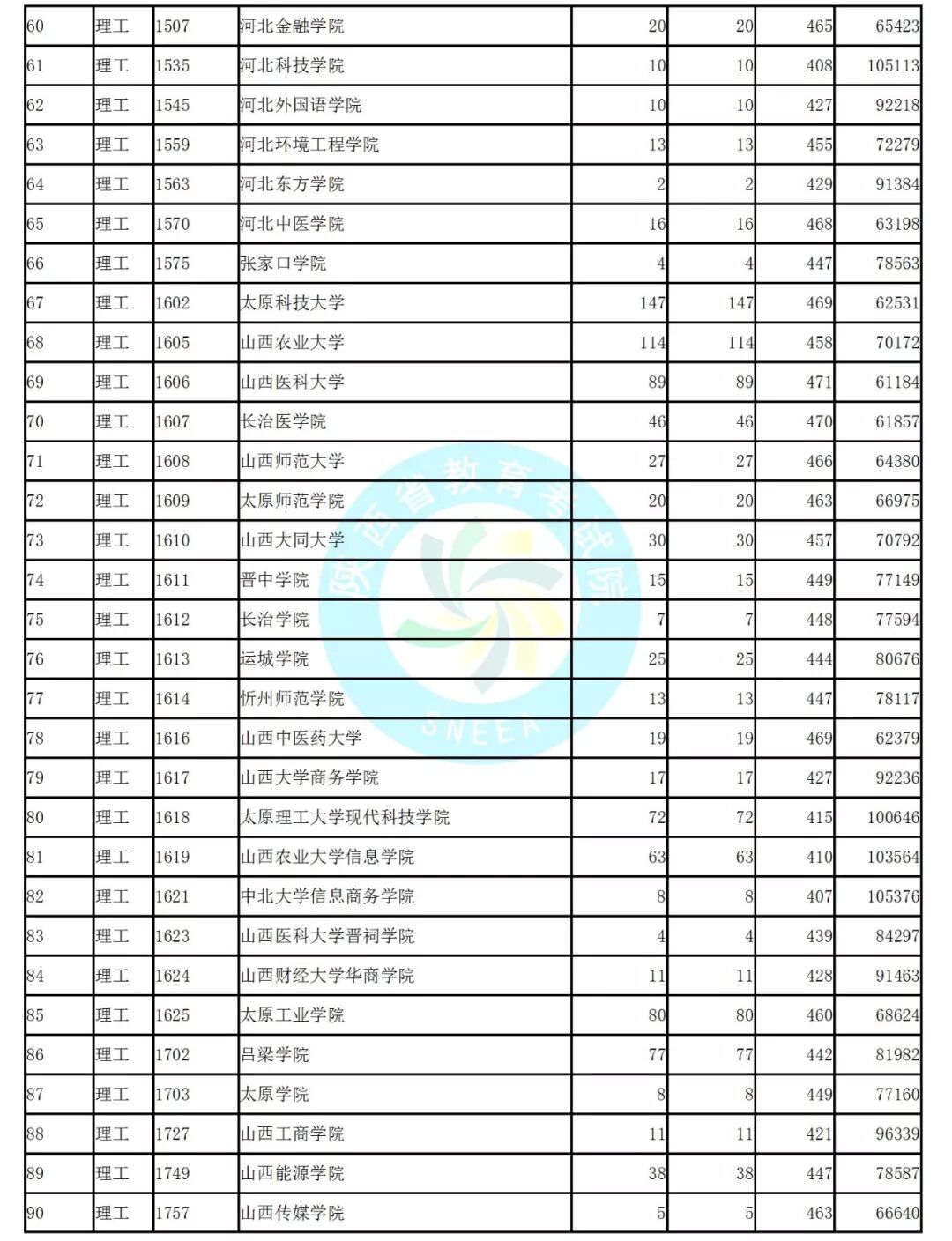 陕西2019本科二批第一次模拟投档情况统计表(理工)