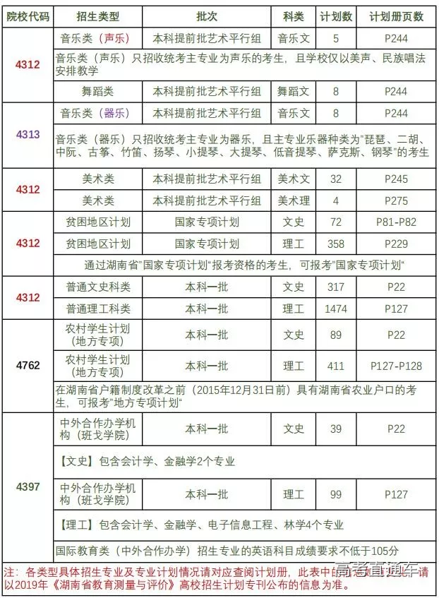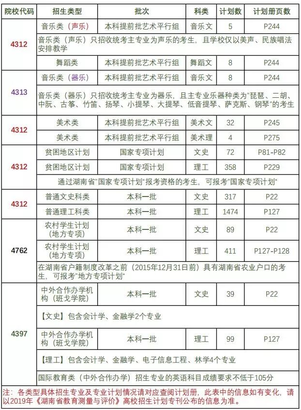 其他未涉及内容请详细查阅《2019年中南林业科技大学本专科招生章程》