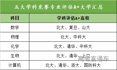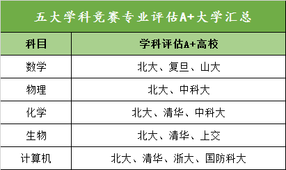 那么,与我们竞赛党最相关的五大专业,即:数学、物理学、化学、生物学、计算机学中,哪些高校的实力最强,拿下了A+评价呢?我们直接来看表: