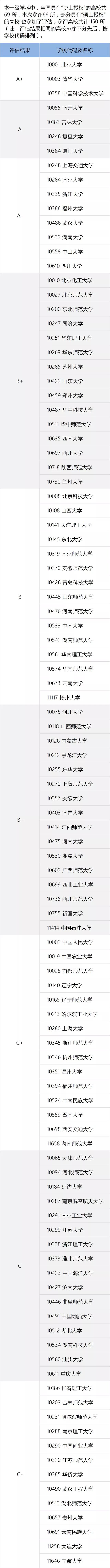学科评估分为A+、A、A-、B+等共9个等级,每个等级内的高校不再另做排名,只为等级不排名次。