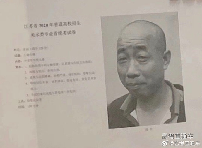 江苏省2020年美术联考人物速写、素描头像,色彩静物手绘考题