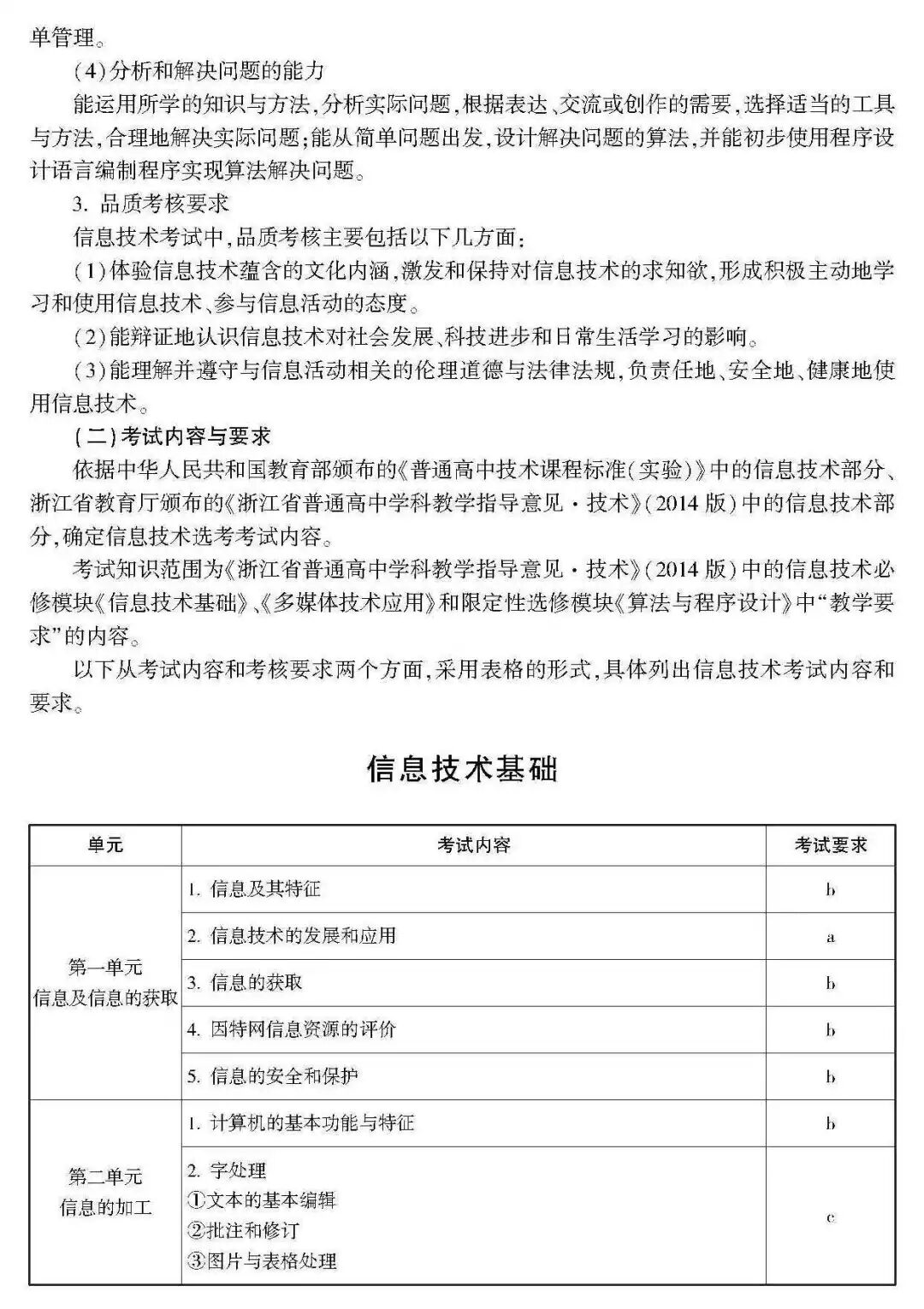 速览收藏!浙江省普通高考选考科目考试说明(技术)