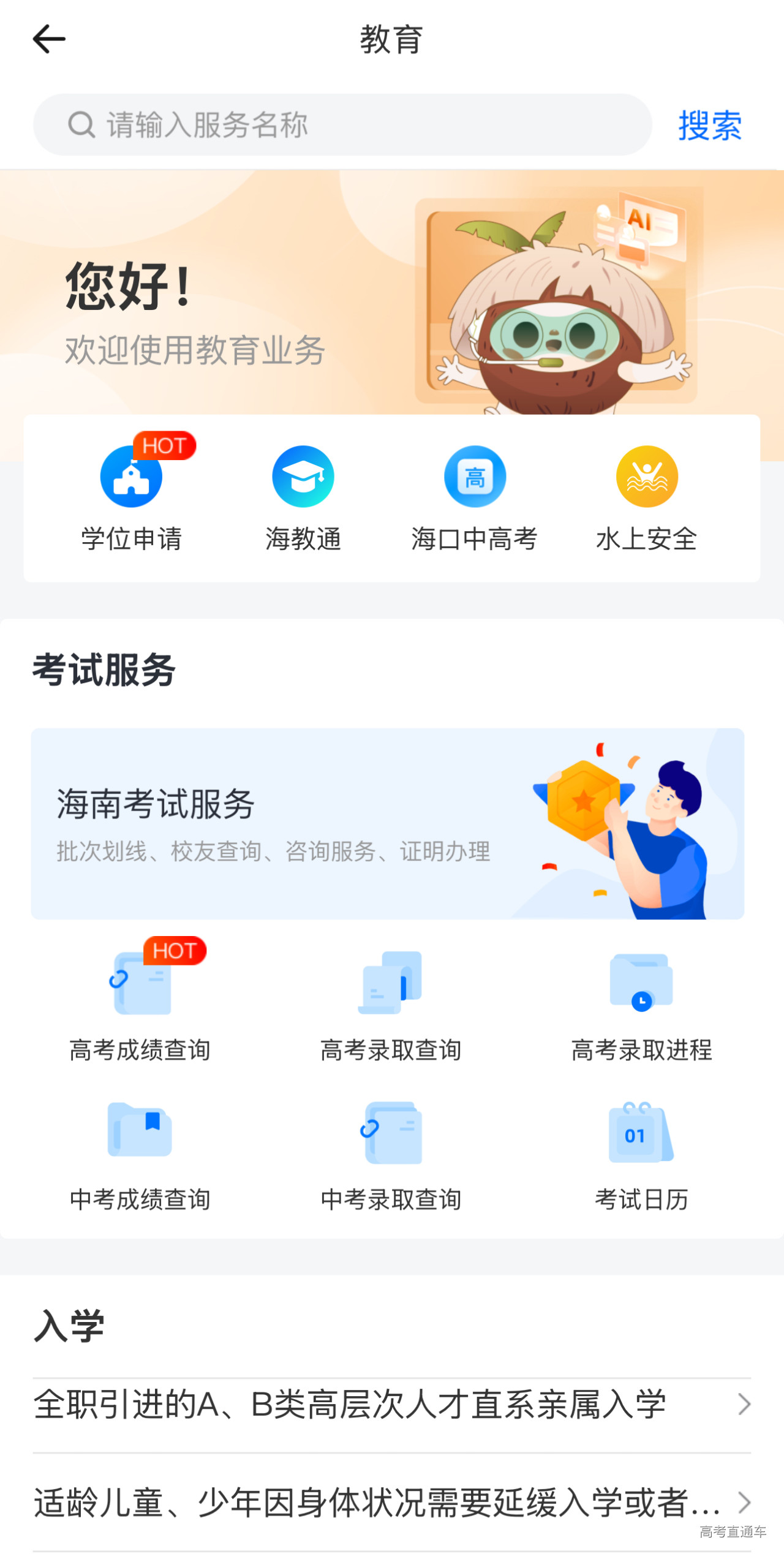 1.海易办APP查询。在手机上进入海易办APP,在“热门服务”中点击“教育”,然后在“海南考试服务”中选择“中考成绩查询”,输入准考证号码、考生身份证号码后6位数字(以X结尾的身份证号码输入X之前的6位数字,港澳台籍和外国籍考生输入证件号中所有数字的后6位,不够6位的输入全部数字,下同)以及界面上的验证码查询。