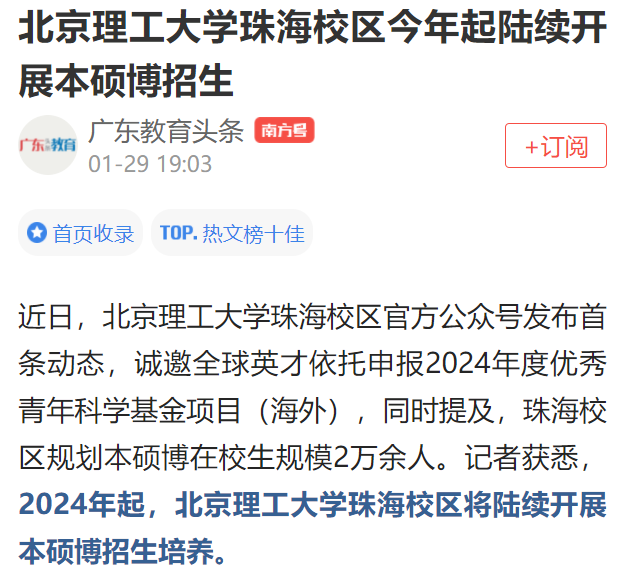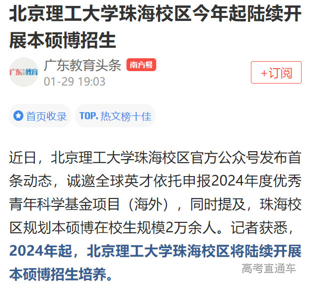 转设被视为独立学院走上发展“快车道”的关键契机。近年来,随着各地转设工作的不断推进,有的学校搭上了转公、转民的列车,还有的“摇身一变”成为名校校区,如南京大学金陵学院融入南京大学苏州校区、北京师范大学珠海分校向珠海校区转设。 近期,“北京理工大学珠海学院融入珠海校区发展”的消息频传,该校的转设方向基本确定,北理工这所名气实力兼具的985高校,预计也将真正落户广东珠海,那何时开始招生呢? 据南方日报1月29日消息,2024年起北京理工大学珠海校区将陆续开展本硕博招生培养。 北京理工大学珠海学院学生也曾在2023年透露,珠海校区将在2024年开始招生。 珠海校区是以北京理工大学的名义正式招生,届时,预估录取分数能与中大、华工等985高校不分伯仲。具体招生时间还要等官方确定,高考直通车也将持续关注、及时推送。 其实,北理工与珠海早于21世纪初始就已“结缘”。 ★2000年7月,北京理工大学与珠海市人民政府签订《合作建设北京理工大学珠海校区协议书》。 ★2001年,珠海校区获批复同意建设,先后开展硕士研究生、继续教育招生 ★2004年,北理工以独立学院模式,在珠海校区上试办珠海学院; ★2014年3月,北理工与珠海签订战略合作协议,确定在珠海校区布局全日制本科教育、研究生教育、研究院、科技园区,并在章程中将“广东珠海校区”纳入办学场所。 ★2022-2023年,北京理工大学珠海学院多次表示将融入珠海校区建设,北理工也明确将珠海校区列入学校“一脉五区,一体发展”的开放办学格局中,并透露珠海校区建设加速推进,取得重大进展。 ★2024年1月27日,官微“北京理工大学珠海校区”(北理工注册于2023年11月7日)首次发文,采用新名称“北京理工大学(珠海)”,明确按照本科生院、研究生院、国际教育学院、大湾区创新研究院、科技园“五位一体”功能布局,规划本硕博在校生规模2万余人,将建设信息通信、智能制造、航空航天、人工智能、集成电路、仪器科学、未来能源、医学工程、海洋科技、法学、商科、设计创新等学科方向。 北京理工大学前身是1940年诞生于延安的自然科学院;1949年迁入北京;1952年定名为北京工业学院,成为新中国第一所国防工业院校;1988年,更名为北京理工大学,首批进入国家“211工程”和“985工程”,首批进入“世界一流大学”建设高校A类行列,隶属于工业和信息化部,是“国防七子”一员。 学校全面构建“一脉五区”的开放办学新格局,建筑总面积超300万平方米。设22个专业学院、9个书院,拥有本科专业78个,全部入选一流本科专业建设点,其中国家一流专业48个、双一流建设学科4个(物理学、材料科学与工程、控制科学与工程、兵器科学与技术)。在全国第四轮学科评估中,兵器科学与技术获评A+(排名全国第1);机械工程、控制科学与工程获评A(排名全国前5%)。 据深圳特区报消息,1月30日深圳市长覃伟中作2024年政府工作报告,其中在聚焦“民生七优”部分提到: 今年将:①推动深圳理工大学、香港中文大学(深圳)音乐学院、创新创意设计学院等建成招生;②打造人工智能、集成电路、先进制造等前沿学科;③推动深圳信息职业技术学院获批升本。 深圳理工大学是深圳市人民政府与中国科学院合作共建的全日制公办研究型高校,已在2023年1月由省教育厅公示,距正式设立只差“教育部同意”这关键一步。目前学校启用西丽校区、明珠校区,主校区选址于深圳市光明科学城,西侧邻近中山大学深圳校区,计划于2024年整体交付。 此外,学校已正式成立7个学院:计算机科学与控制工程学院、生物医学工程学院、生命健康学院、药学院、合成生物学院、材料科学与能源工程学院、算力微电子学院。 据教育部公示的2023年度普通高等学校本科专业申报材料显示(注:高等学校本科专业设置与服务平台),深圳理工大学(筹)申报了材料科学与工程、计算机科学与技术、药学、生物医学工程、神经科学和生物技术6个本科专业。 据深理工招生网显示,学校预计于2024年正式开始招生,欢迎优秀高中理科毕业生报考。这也意味着,学校很可能在今年只招物理类(理科)考生。 2018年底,深圳市委、市政府委托香港中文大学(深圳)筹建深圳音乐学院,初期作为该校二级学院运营。符合条件的本科毕业生获颁香港中文大学学位证及香港中文大学(深圳)毕业证。 深圳音乐学院(筹)被列为深圳市政府规划建设的“新时代十大文化设施”之一,目标是一所国际化、创新型、世界一流的高等音乐艺术院校。 学院位于深圳市龙岗区盐龙大道与国际大学园路交叉口,紧邻香港中文大学(深圳)校区,用地面积约7.38万平方米,建筑面积约12.97万平方米,主要建设内容:综合楼、观演楼、教学楼、实验楼、教师宿舍、学生宿舍、学生综合楼、风雨连廊等。当前该项目正紧锣密鼓地建设当中,预计建成后可满足1000名学生生活学习。 2023年,深圳音乐学院依托香港中文大学(深圳),在广东有多个专业招生,要求首选物理或历史,再选不限。投档分最低是470分/4283名被投档(音乐表演-小提琴),最高是614分/6名(音乐表演-乐队指挥)。 深圳创新创意设计学院于2019年开始筹建。项目地处宝安区规划的宝安教育城、凤凰山文化创意区,紧邻深圳航空新城,占地面积约34.9万平方米,规划建设教学办公用房、研究创意设计实验室及工坊、生活用房等30万平方米