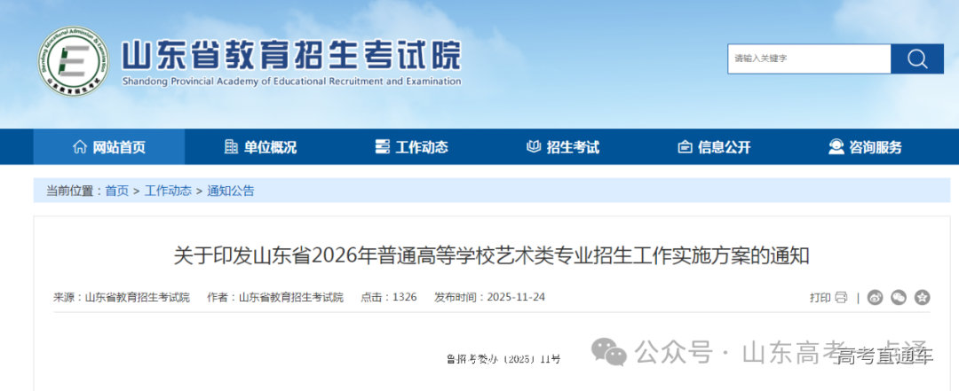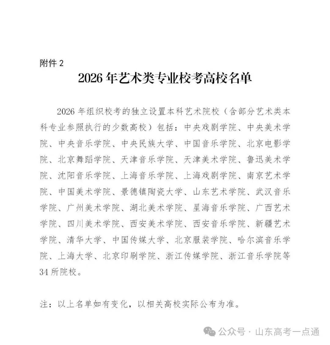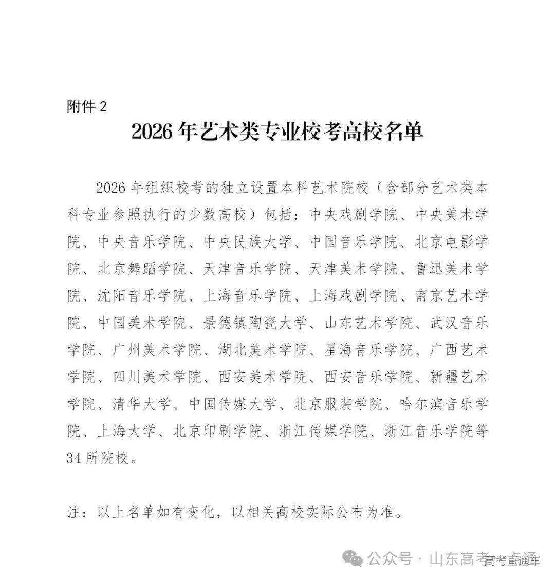 刚刚,山东省教育招生考试院发布了《关于印发山东省2026年普通高等学校艺术类专业招生工作实施方案的通知》,其中一个重大变化是:艺术类本科批和专科批省级统考专业(使用省级统考成绩)均实行平行志愿,1个“专业(专业类)+学校”为1个志愿,考生每次填报志愿的数量不超过96个,可以填满所有志愿,也可选择填报部分志愿。具体内容一起来看~