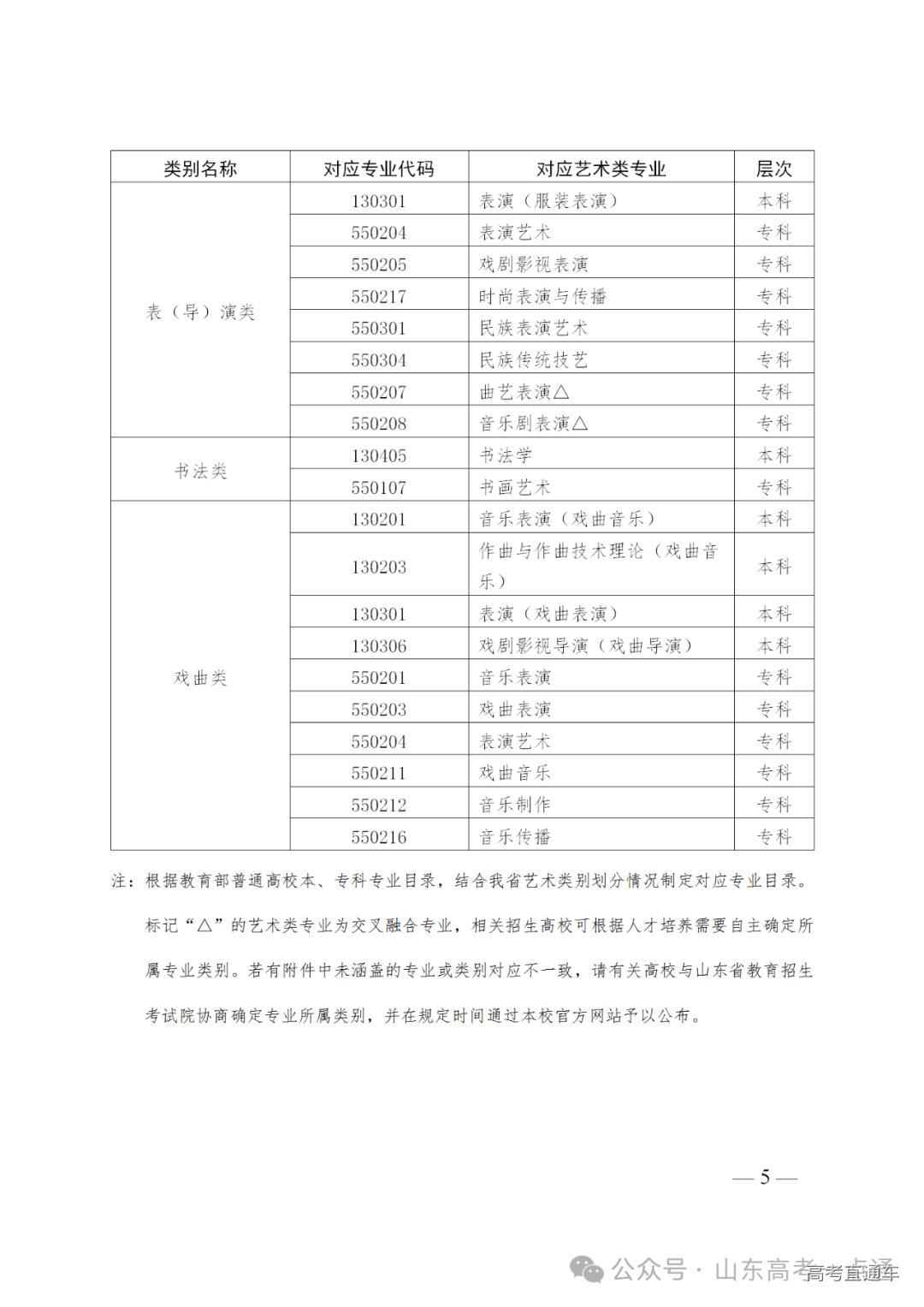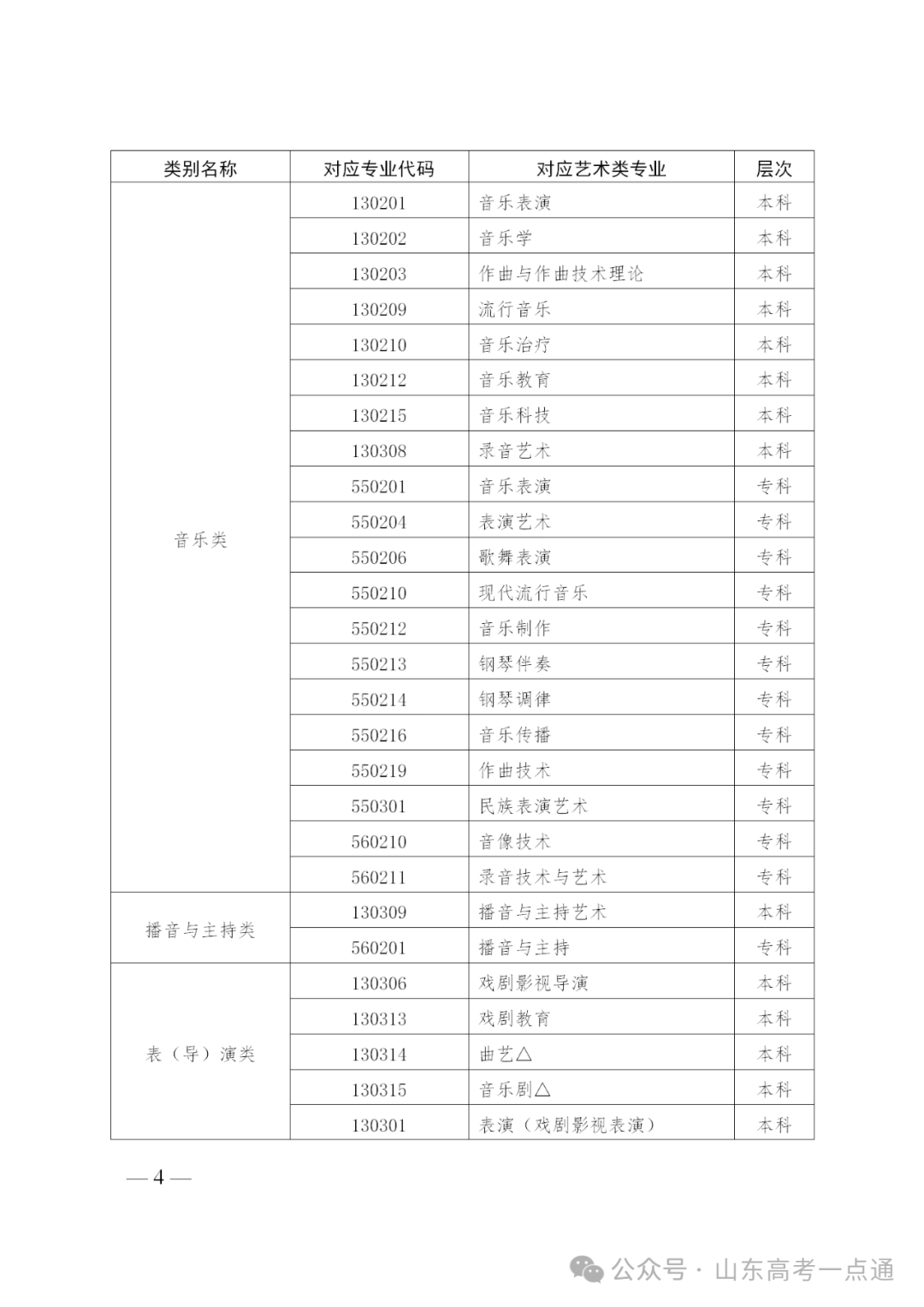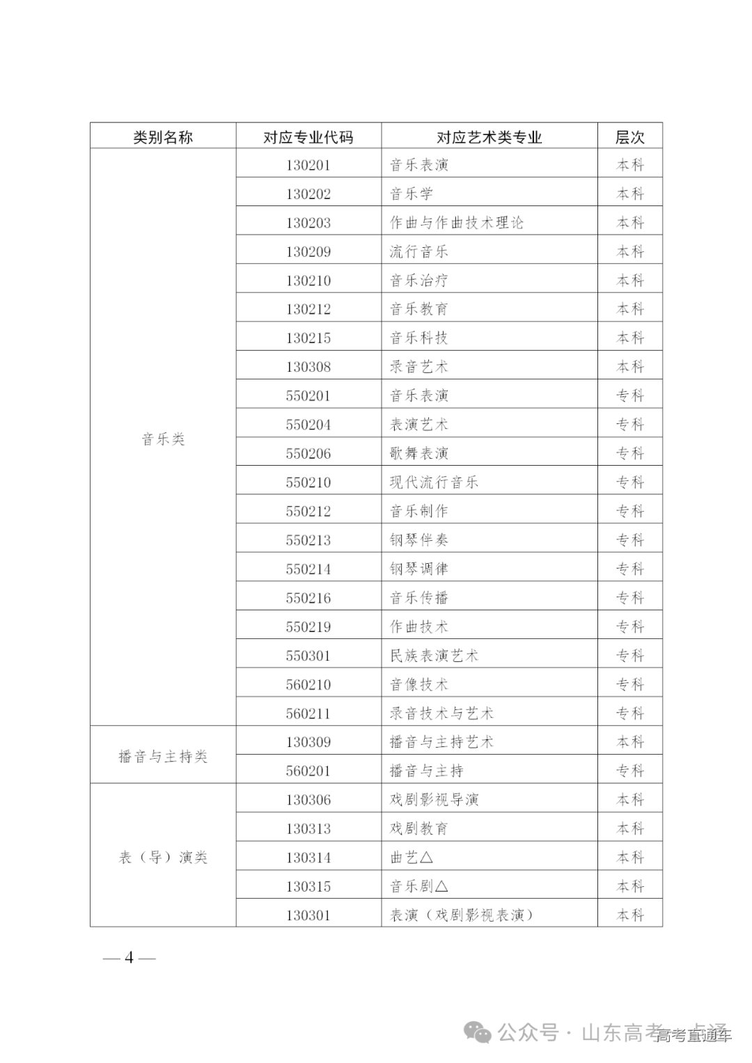 关于印发山东省2026年普通高等学校艺术类专业招生工作实施方案的通知 鲁招考委办〔2025〕11号 各市招生(考试)委员会,各高等学校: 现将《山东省2026年普通高等学校艺术类专业招生工作实施方案》印发给你们,请遵照执行。 山东省招生考试委员会办公室 (山东省教育厅代章) 2025年11月21日 山东省2026年普通高等学校艺术类专业招生工作实施方案 为规范实施山东省2026年普通高等学校艺术类专业招生工作,公平、公正选拔艺术类专业人才,根据教育部部署,结合我省实际,制定本实施方案。 一、招生类别与计划管理 (一)山东省艺术类招生专业划分为美术与设计类、书法类、舞蹈类、音乐类、播音与主持类、表(导)演类、戏曲类等7个类别。原则上高校同一艺术类专业只能对应一个省级统考专业类别,且在各招生省份保持一致。高校应在规定时间公布招生专业及对应专业类别、录取要求等信息。 (二)山东省2026年普通高等学校招生考生号第9位的科类代码“3”为艺术类考生标识。除少数经教育部批准组织校考的专业和省际联考的戏曲类本科专业不编制分省计划外,其他艺术类专业均须编制分省分专业招生计划。高校设立招考方向的艺术类专业,须编制各招考方向的分省招生计划。录取期间,校考专业(招考方向)未完成的计划,不得调整至其他校考专业(招考方向)。未经教育部批准的艺术类专业,不得编制艺术类招生来源计划。 二、专业考试及成绩使用 山东省2026年艺术类专业考试分为省级统考、省际联考和高校校考。未经教育部批准的艺术类专业,不得组织专业考试。原则上考生限选一类艺术专业报考,录取阶段同一批次也只能选择一类艺术专业填报志愿和参与录取。 (一)省级统考。 山东省教育招生考试院负责组织2026年山东省美术与设计类、书法类、舞蹈类、音乐类、播音与主持类、表(导)演类省级统考工作。 1.省级统考时间及科目分值。 美术与设计类、书法类、音乐类、表(导)演类笔试科目考试时间为2025年12月6日至12月7日;播音与主持类、舞蹈类、音乐类、表(导)演类面试科目考试(含录制)时间为2025年12月17日至24日,各类别具体结束时间以考试编场时间为准。 美术与设计类考试科目:速写(综合能力)满分100分,素描满分100分,色彩满分100分,总分满分为300分。 书法类考试科目:书法临摹满分150分,书法创作满分150分,总分满分为300分。 舞蹈类分为中国舞、芭蕾舞、国际标准舞、现代舞、流行舞5个舞种方向,考生自主选择1个方向报考。舞蹈类考试科目:舞蹈基本功、舞蹈表演、舞蹈即兴3个科目,每科目按照满分100分评分,总成绩=舞蹈基本功×120%+舞蹈表演×150%+舞蹈即兴×30%,总分满分为300分。 音乐类分为乐理、听写、视唱、声乐、器乐5个科目,考生可从声乐、器乐2个科目中,自主选择1个或2个科目报考,并各自准确选择1种专业技能项目名称。后续将依据招生高校要求和考生报名时选择的声乐、器乐技能项目进行录取。选择报考1个科目的考生,仅生成音乐表演(器乐)或音乐表演(声乐)1项专业成绩;选择报考2个科目的考生,可生成音乐表演(器乐)、音乐表演(声乐)、音乐教育3项专业成绩。 音乐表演(器乐)考试科目:乐理、听写、视唱、器乐4个科目,每科目按照满分100分评分,总成绩=乐理×15%+听写×30%+视唱×15%+器乐×240%,总分满分为300分。 音乐表演(声乐)考试科目:乐理、听写、视唱、声乐4个科目,每科目按照满分100分评分,总成绩=乐理×15%+听写×30%+视唱×15%+声乐×240%,总分满分为300分。 音乐教育考试科目:乐理、听写、视唱、器乐、声乐5个科目,每科目按照满分100分评分,器乐、声乐分主、副项,成绩高者默认为主项,成绩低者默认为副项,总成绩=乐理×15%+听写×30%+视唱×15%+主项×165%+副项×75%,总分满分为300分。 播音与主持类考试科目:作品朗读、新闻播报、话题评述3个科目,每科目按照满分100分评分,总分满分为300分。 表(导)演类分为戏剧影视表演、戏剧影视导演、服装表演3个方向,考生可选择服装表演方向或从戏剧影视表演、戏剧影视导演2个方向中,自主选择1个或2个方向报考,相同考试科目仅考1次。 表(导)演类(戏剧影视表演方向)考试科目:文学作品朗诵、自选曲目演唱、形体技能展现、命题即兴表演4个科目,每科目按照满分100分评分,总成绩=文学作品朗诵+自选曲目演唱×50%+形体技能展现×50%+命题即兴表演,总分为满分300分。 表(导)演类(戏剧影视导演方向)考试科目:文学作品朗诵、命题即兴表演、叙事性作品写作3个科目,每科目按照满分100分评分,总成绩=文学作品朗诵×50%+命题即兴表演×50%+叙事性作品写作×200%,总分为满分300分。 表(导)演类(服装表演方向)考试科目:形体形象观测、台步展示、才艺展示3个科目,每科目按照满分100分评分,总成绩=形体形象观测×150%+台步展示×120%+才艺展示×30%,总分为满分300分。 2.考试组织形式。 2026年我省艺术类专业省级统考美术与设计类、书法类专业采取笔试形式;音乐类专业采取笔试及现场录制形式;表(导)演类(戏剧影视导演方向)专业采取笔试及现场面试形式;舞蹈类、播音与主持类、表(导)演类(戏剧影视表演、服装表演方向)专业采取现场面试形式。 2027年起,播音与主持类专业省级统考将实行现场录制考试形式。 3.省级统考成绩使用。 除少数经教育部批准组织校考的专业及省际联考的戏曲类专业外,其他