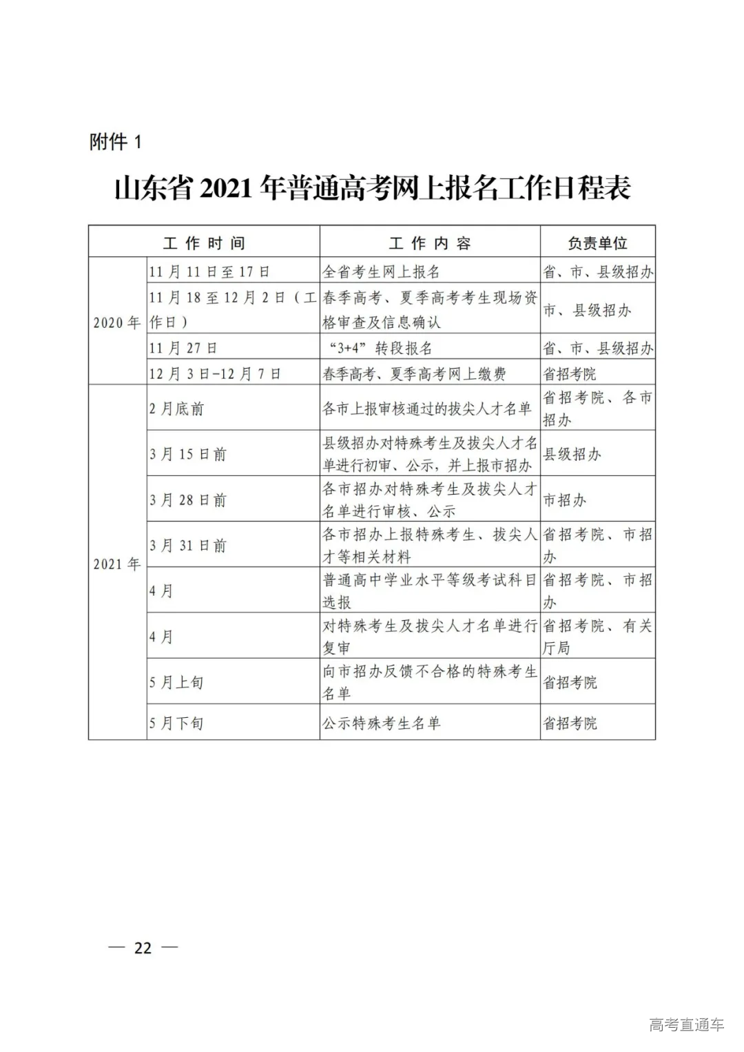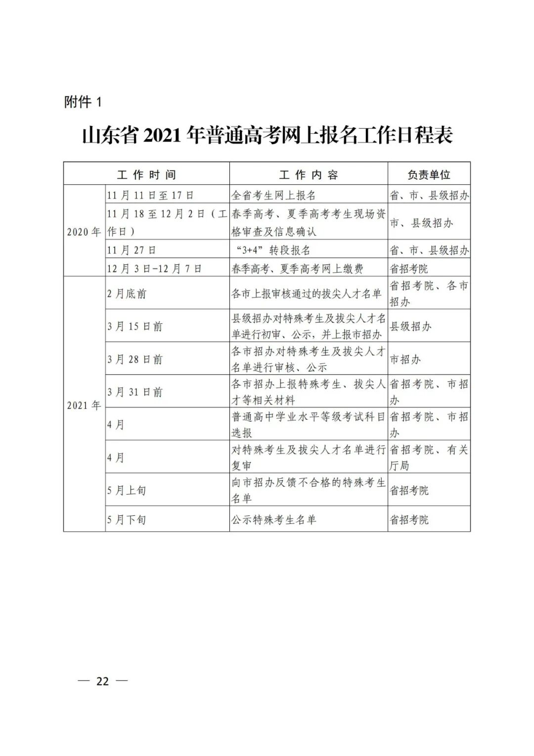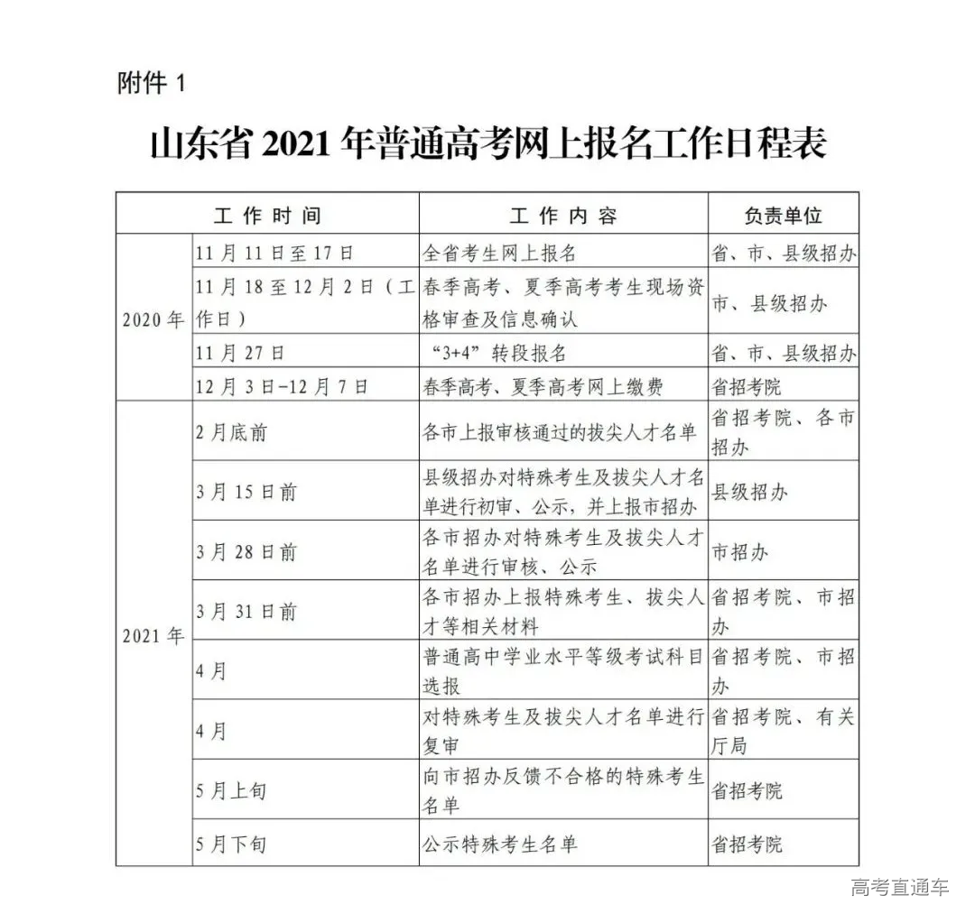 1.山东省2021年普通高考网上报名工作日程表
