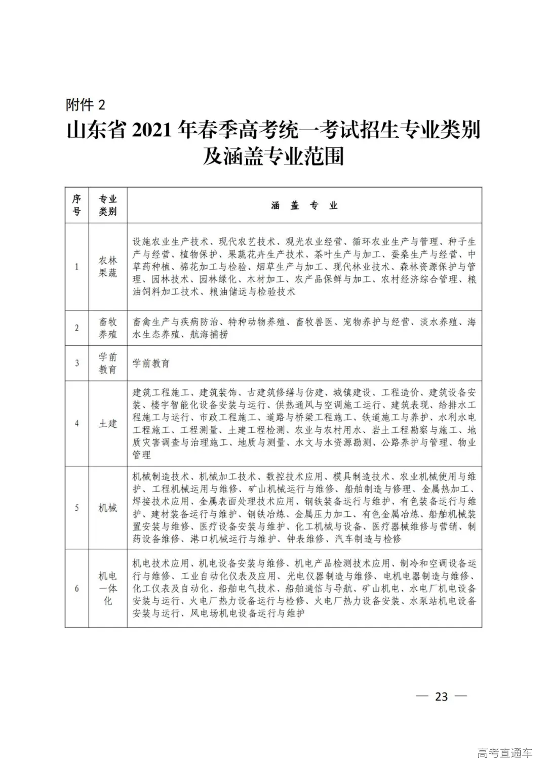 2.山东省2021年春季高考统一考试招生专业类别及
