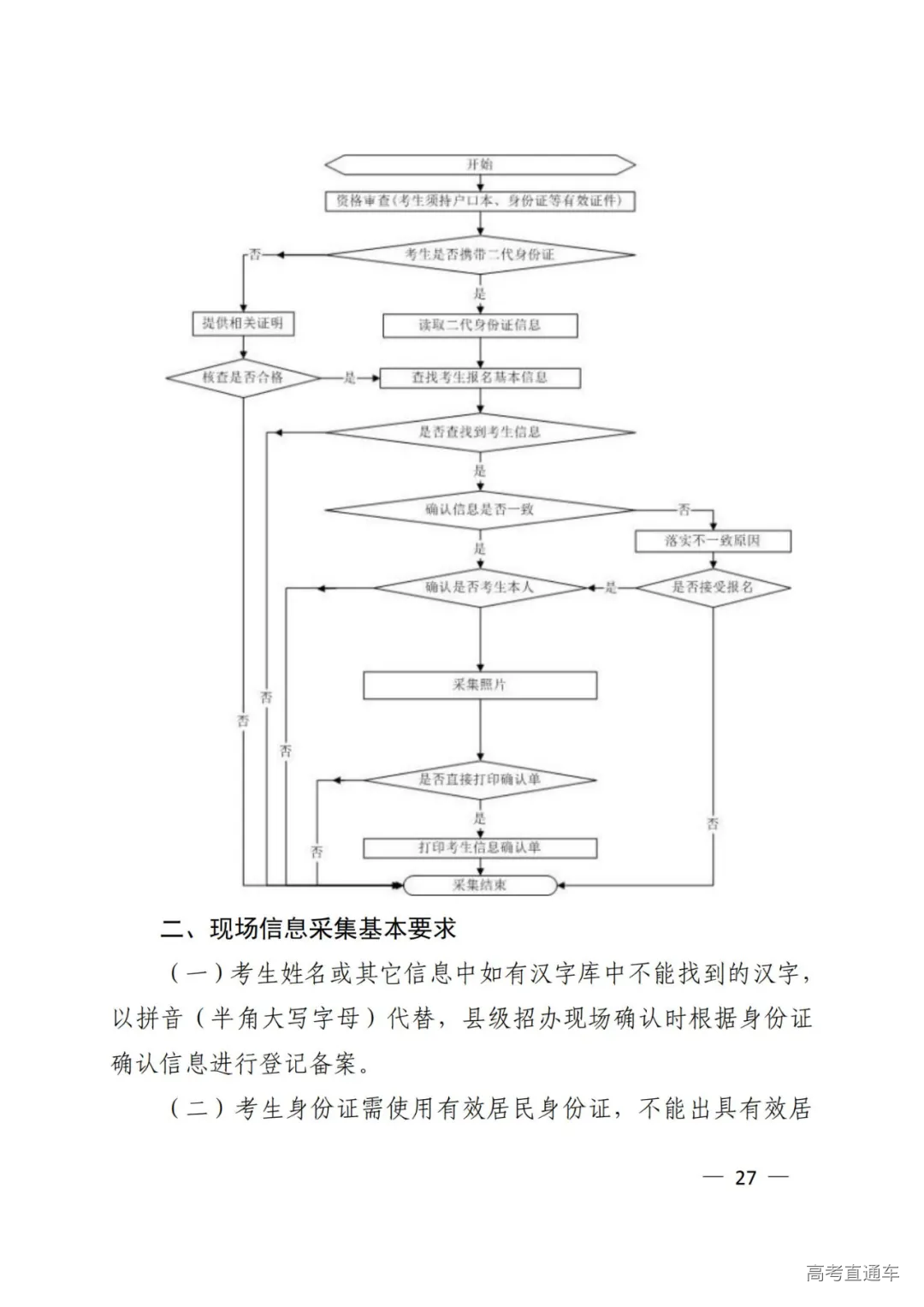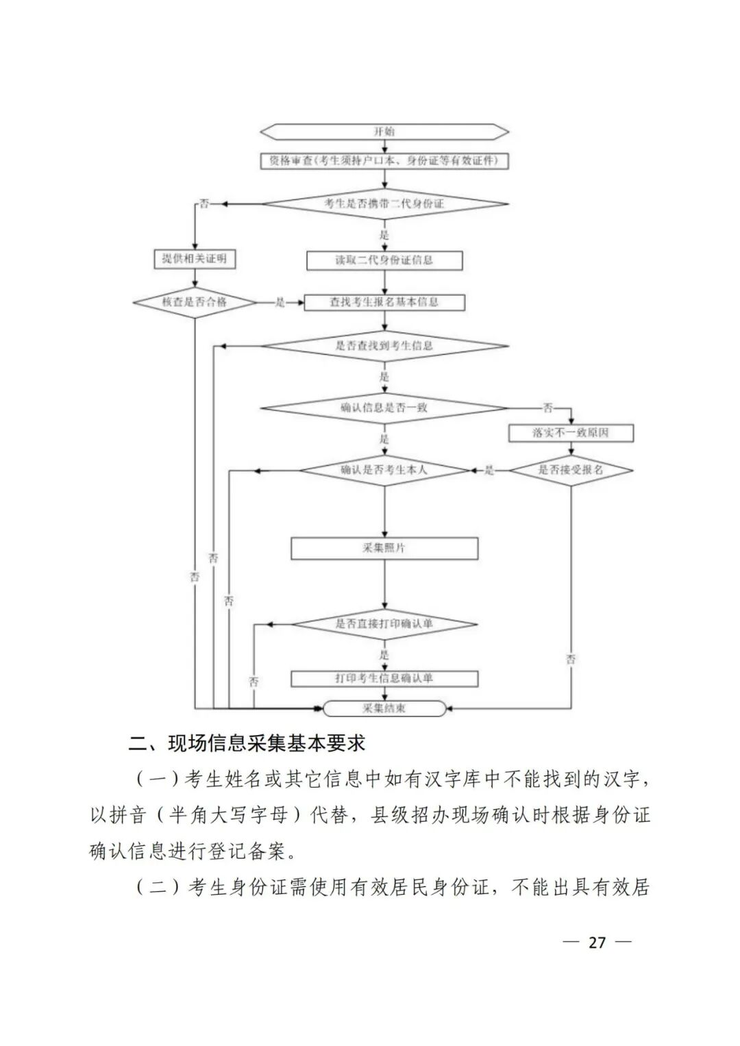 网上报名考生须按规定时间进行现场资格审查及信息确认,内容包括确认身份、核验相关证件与证明材料、采集照片等信息、签订《考生诚信考试承诺书》、签字确认等。