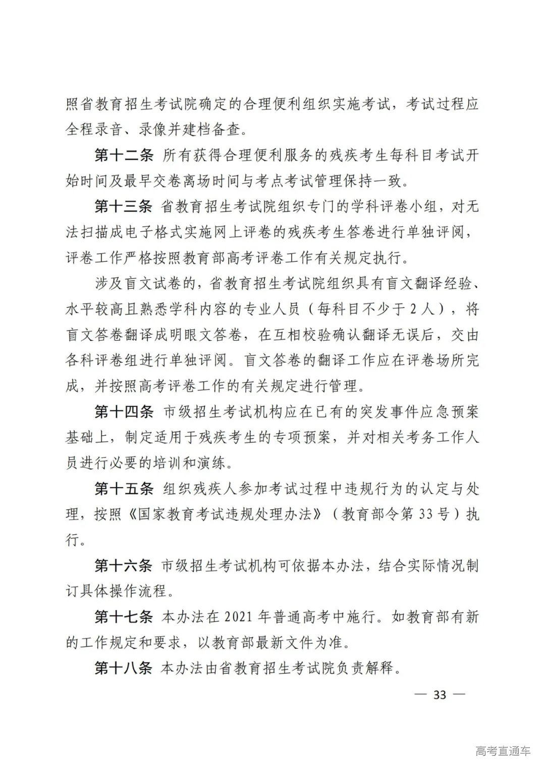 该工作具体办法按《山东省残疾人参加普通高等学校招生全国统一考试申请合理便利实施办法》(暂行)(附件4)办理,各市招生考试机构要据此做好相关工作。