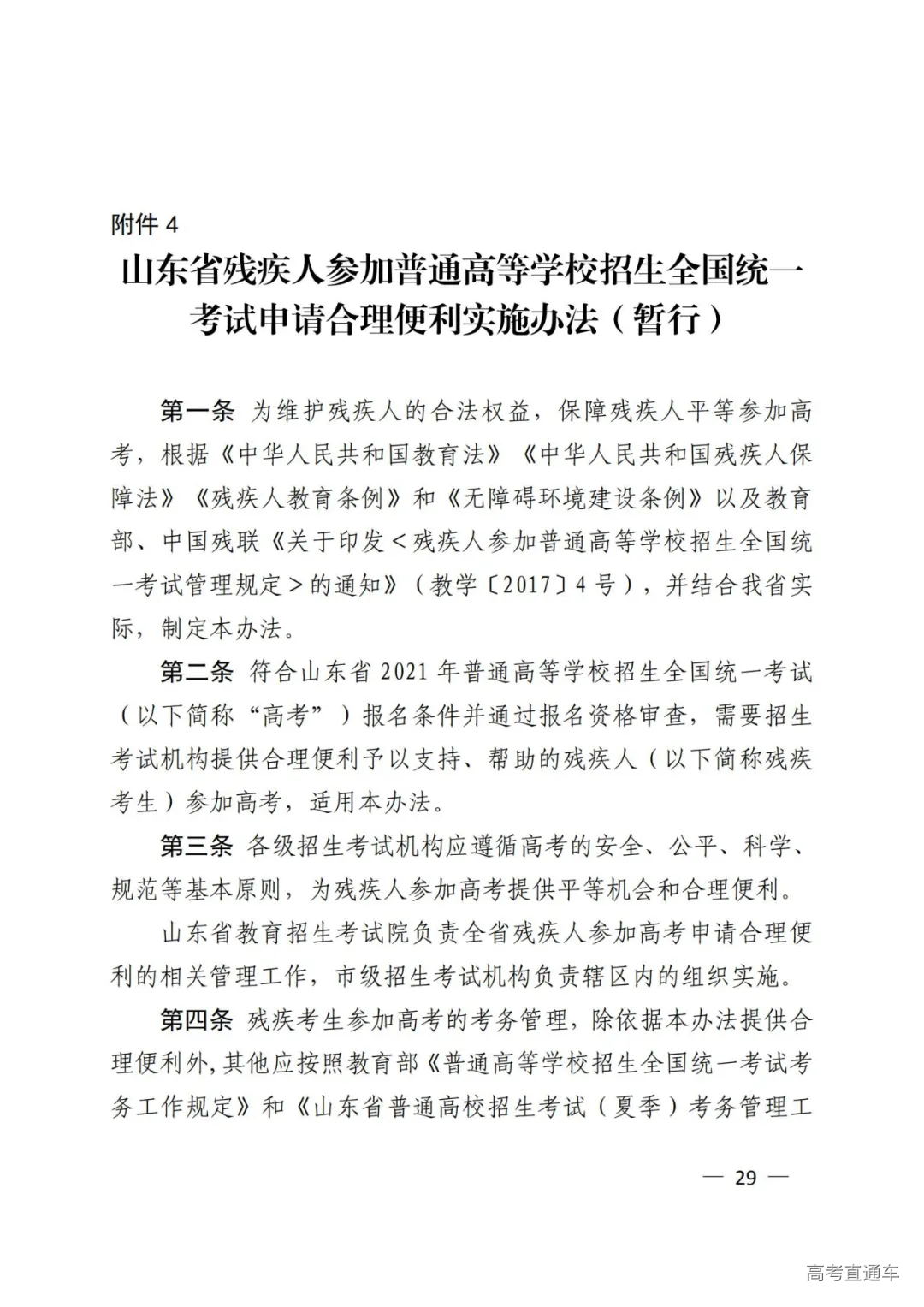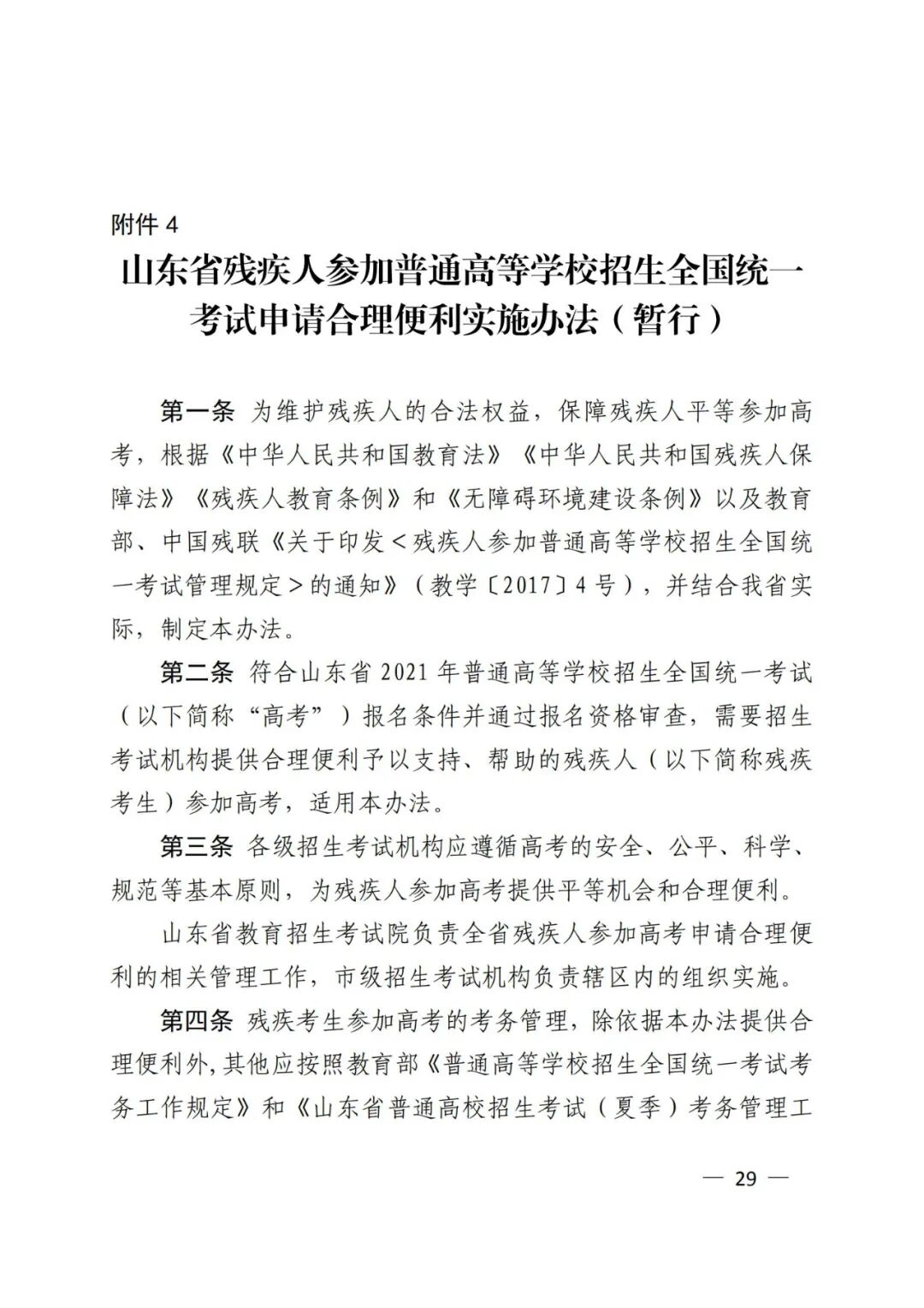 4.山东省残疾人参加普通高等学校招生全国统一考试申请合理便利实施办法(暂行)