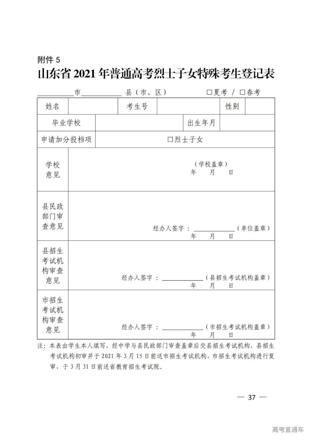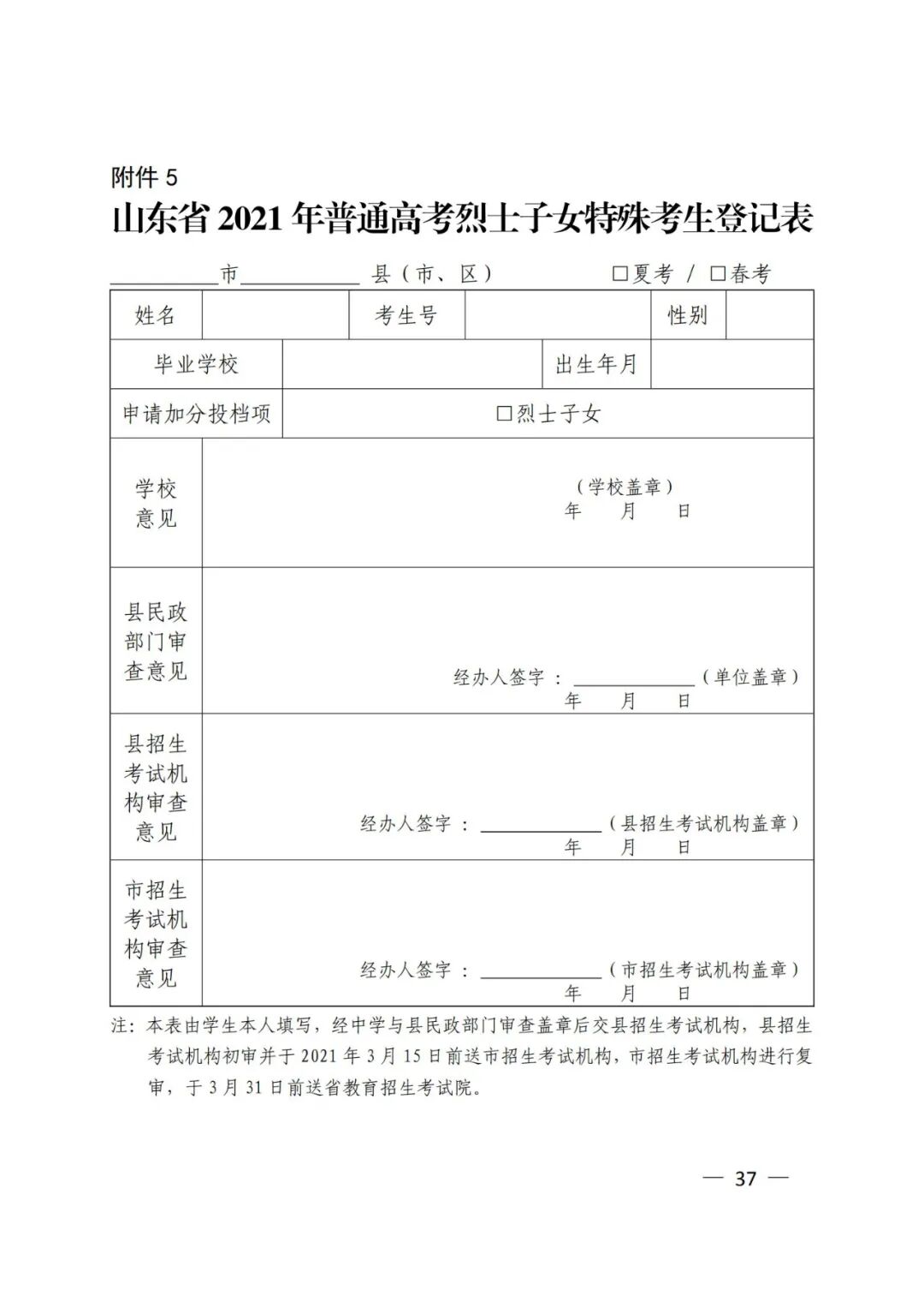 5.山东省2021年普通高考烈士子女特殊考生登记表