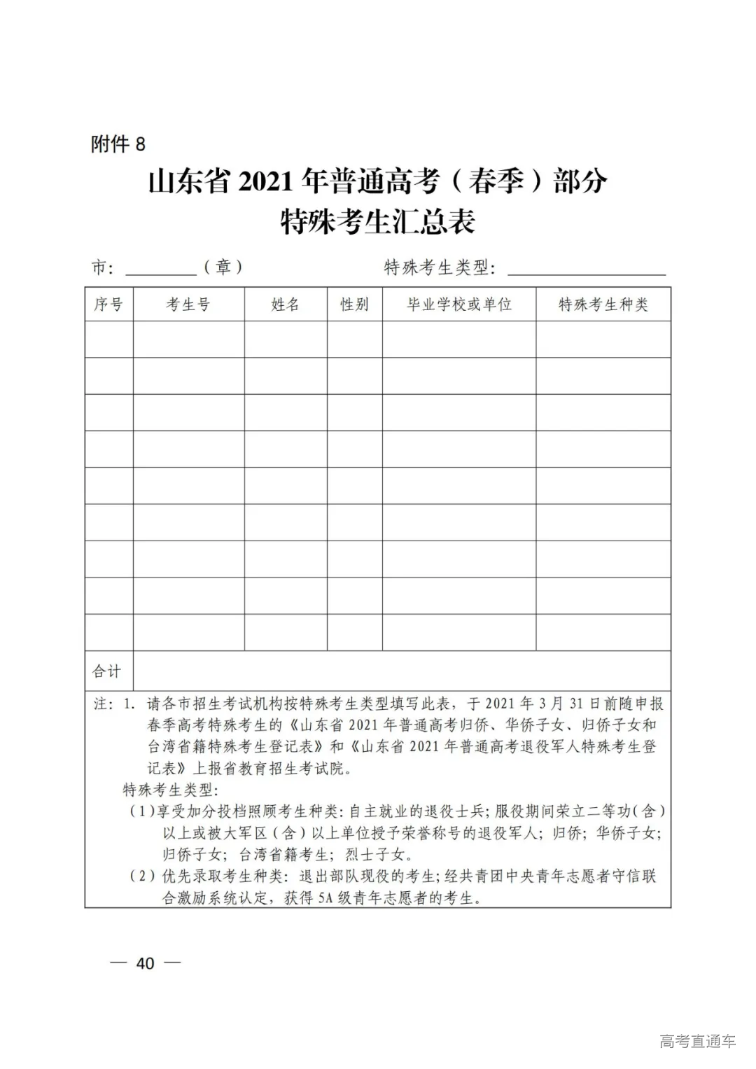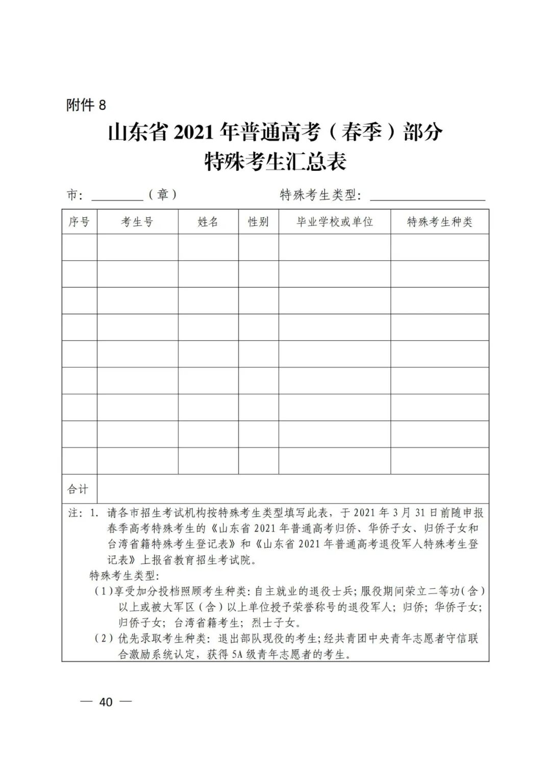 8.山东省2021年普通高考(春季)部分特殊考生汇总表
