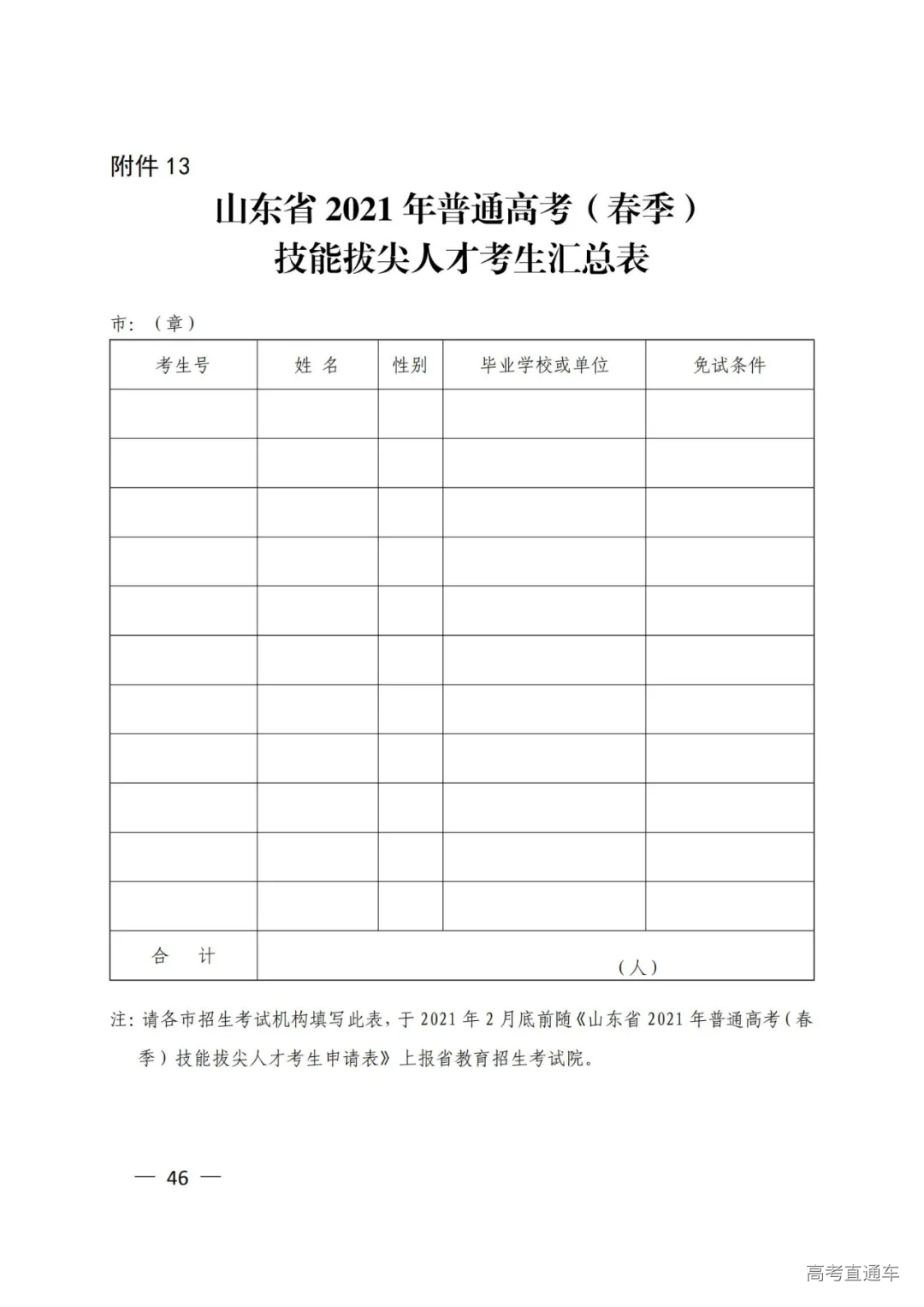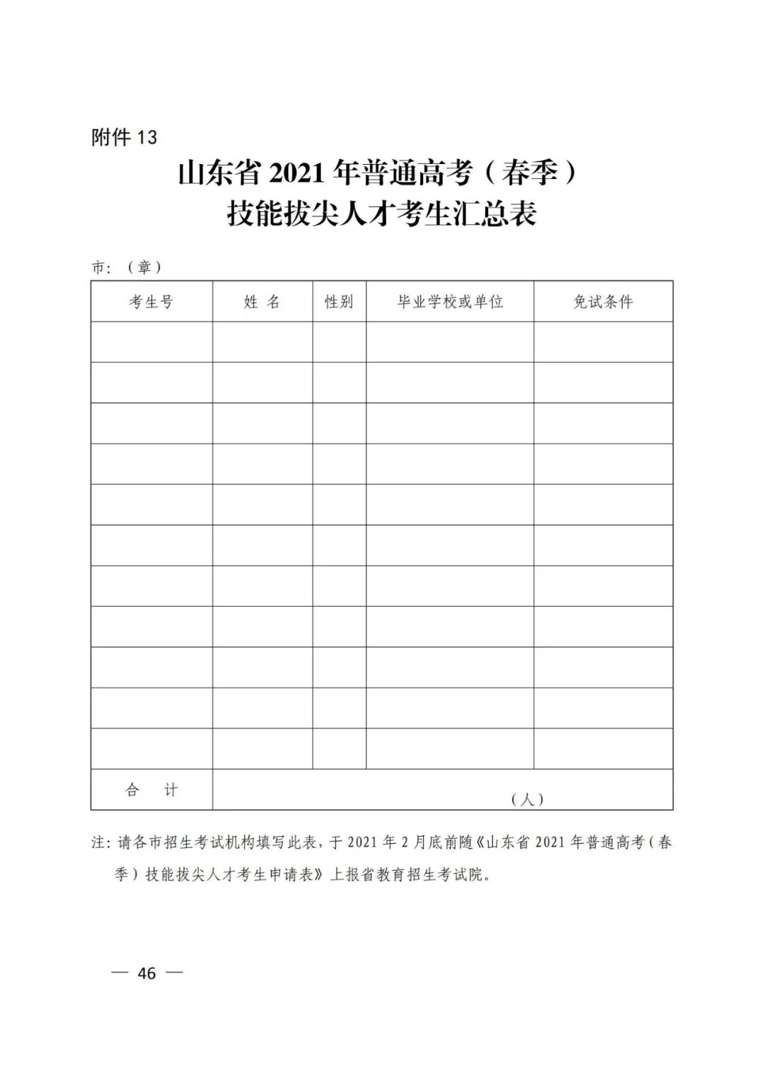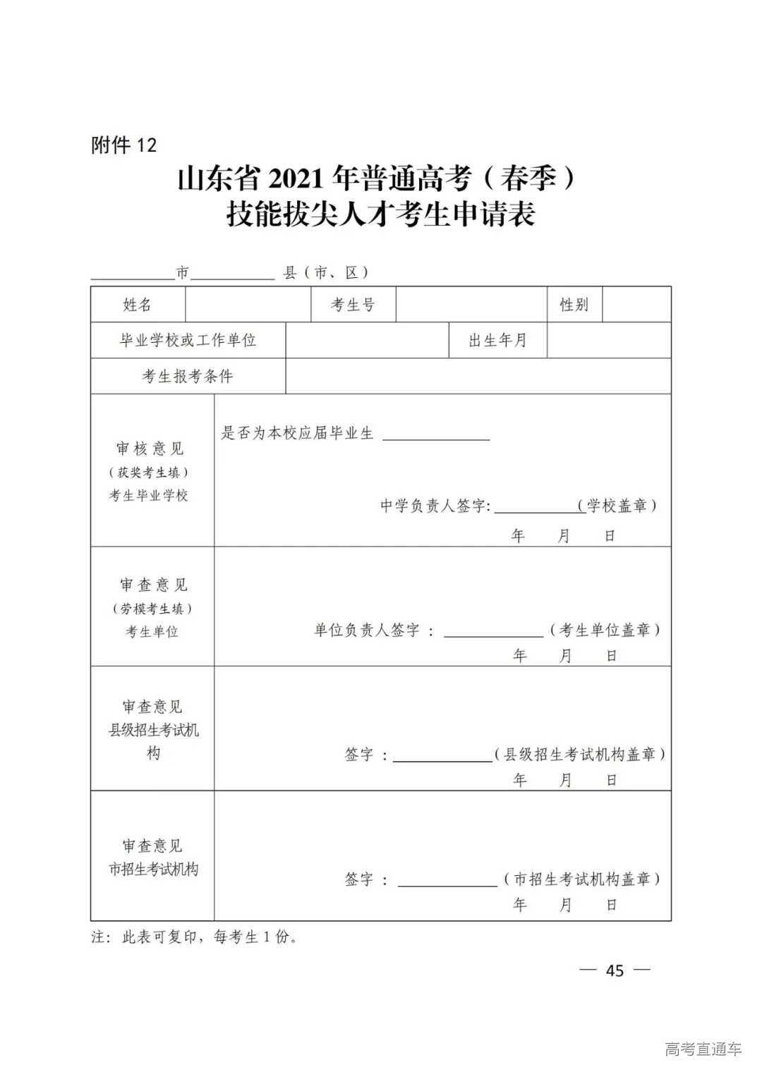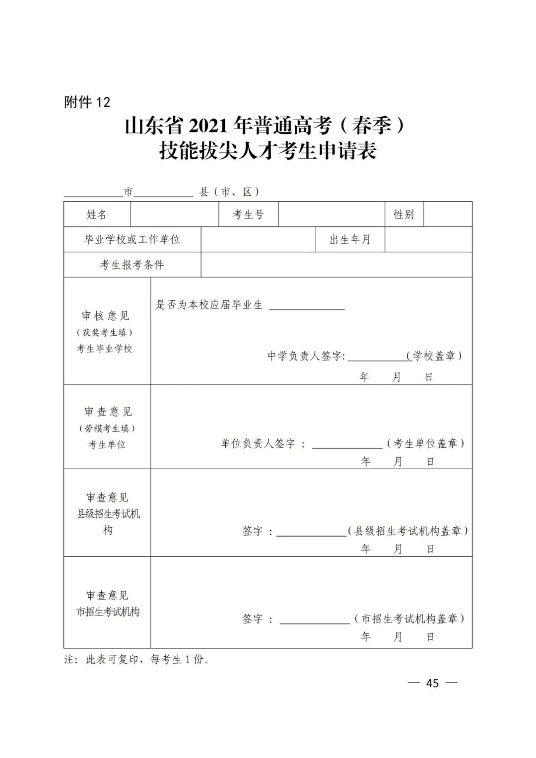 12.山东省2021年普通高考(春季)技能拔尖人才考生申请表