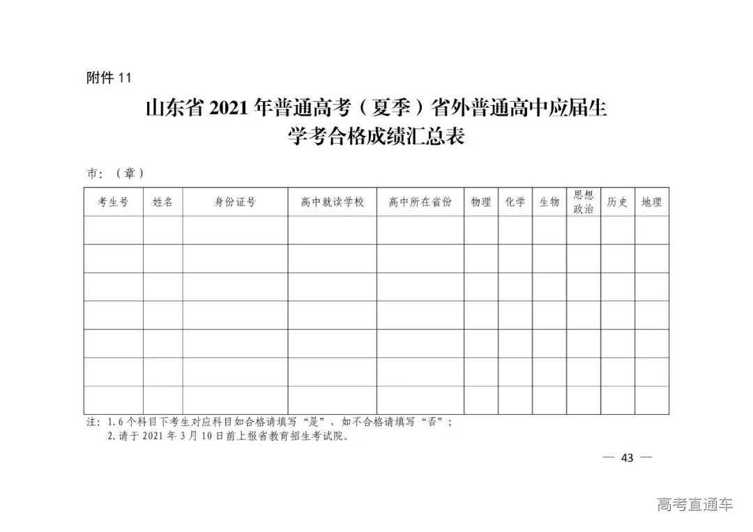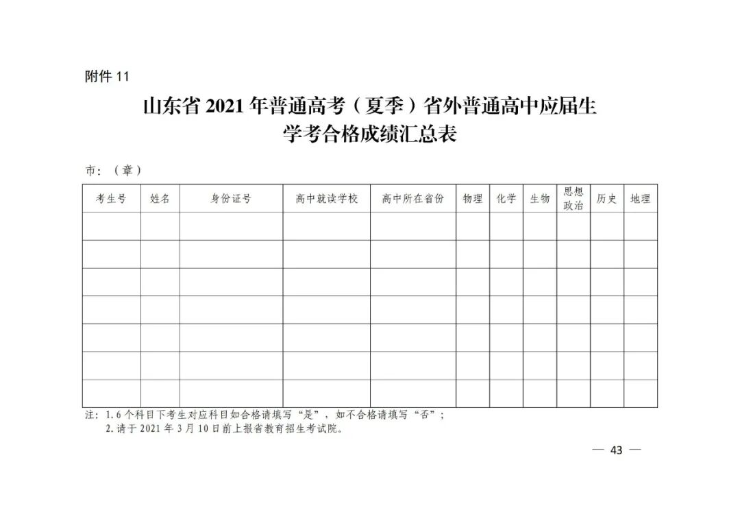 11.山东省2021年普通高考(夏季)省外高中应届生学考合格成绩汇总表