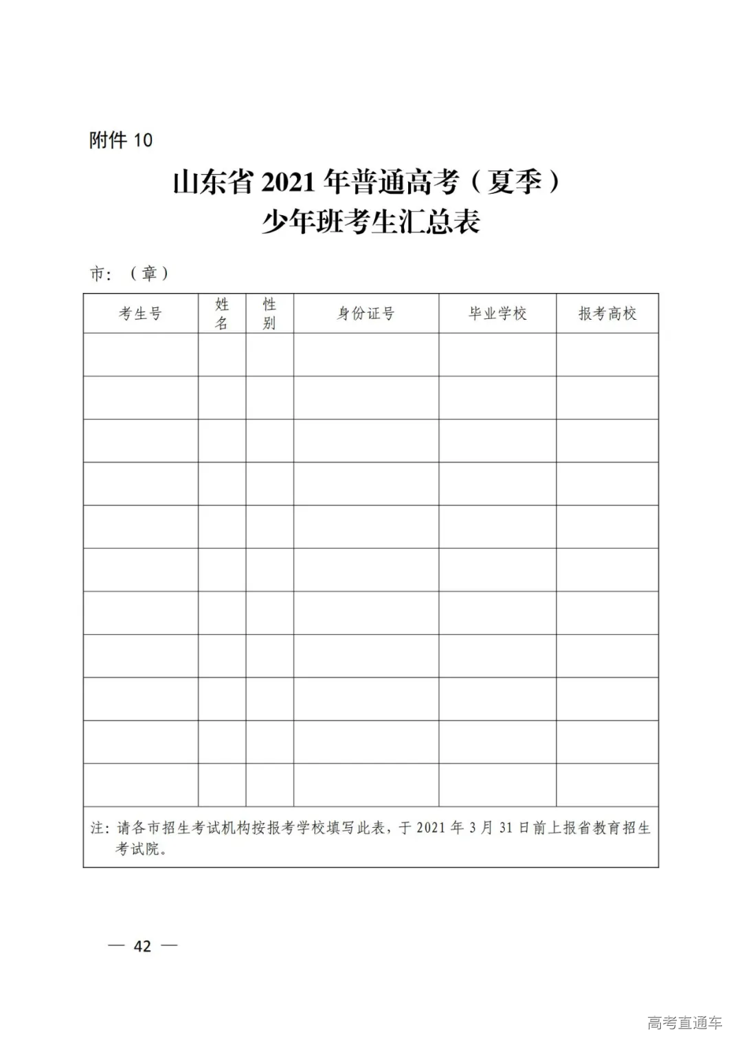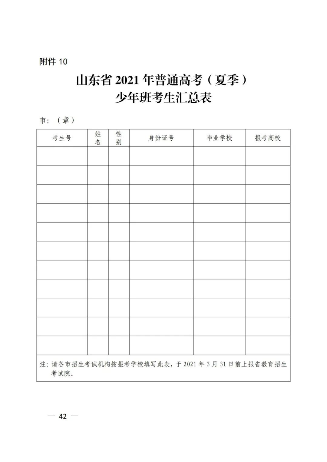 10.山东省2021年普通高考(夏季)少年班考生汇总表