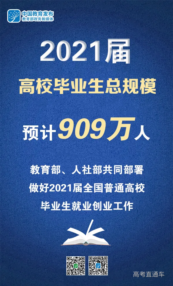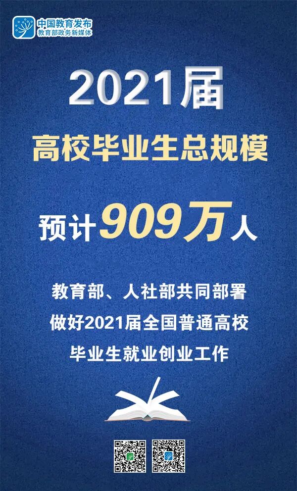 会议指出,今年以来,各地教育部门、人社部门和高校积极应对疫情影响,强化责任担当,开拓就业渠道,强化就业服务,保持了毕业生就业局势总体稳定。2021届高校毕业生总规模预计909万人,同比增加35万,面临的就业形势严峻复杂。各地各高校要学深悟透党的十九届五中全会精神,深刻认识做好高校毕业生就业工作的重要意义,将立足新发展阶段、落实新发展理念、构建新发展格局的要求贯穿融入高校毕业生就业工作,做好谋篇布局、力量统筹、政策储备、风险应对等各项工作,千方百计促进2021届高校毕业生更加充分更高质量就业。