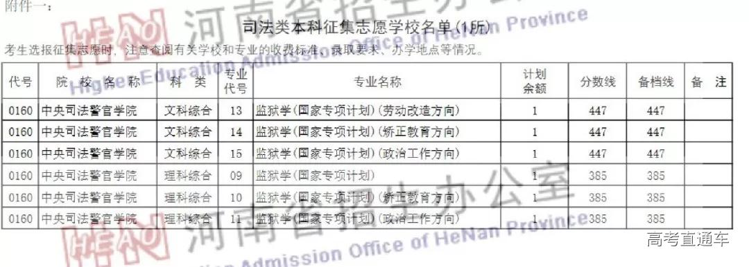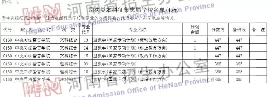 司法类本科征集志愿学校名单(1所)