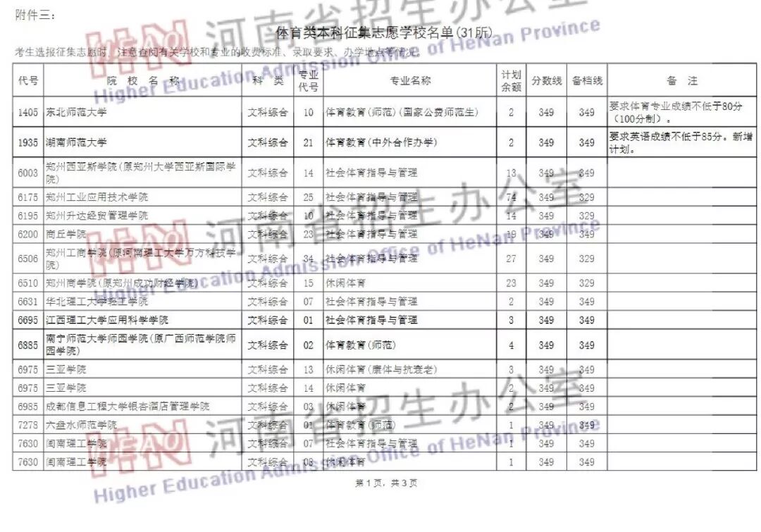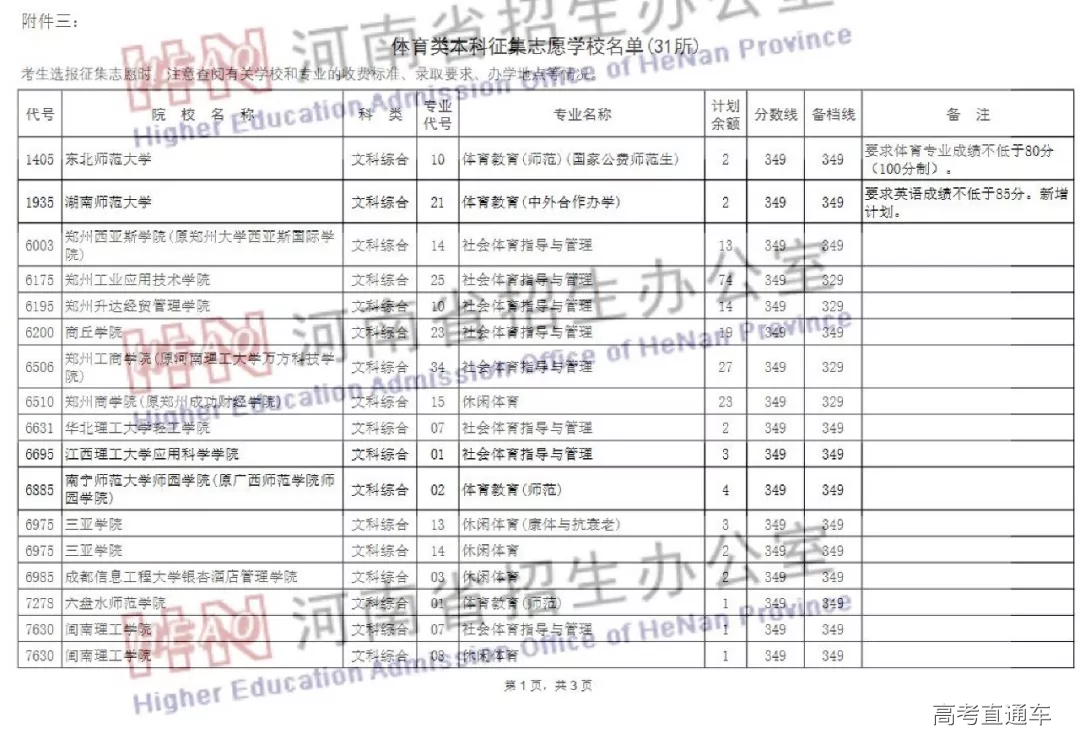 体育类本科征集志愿学校名单(31所)