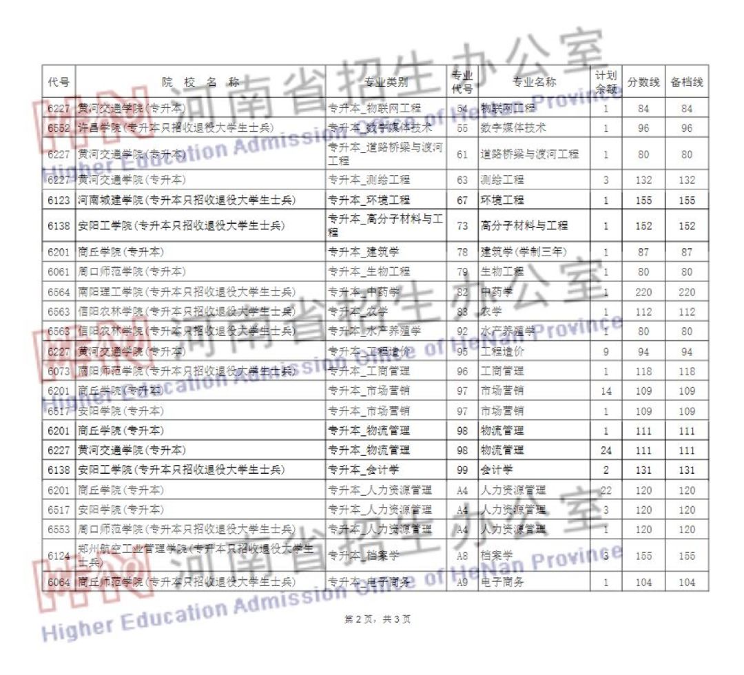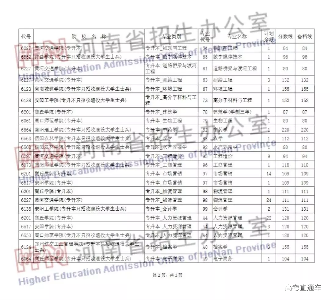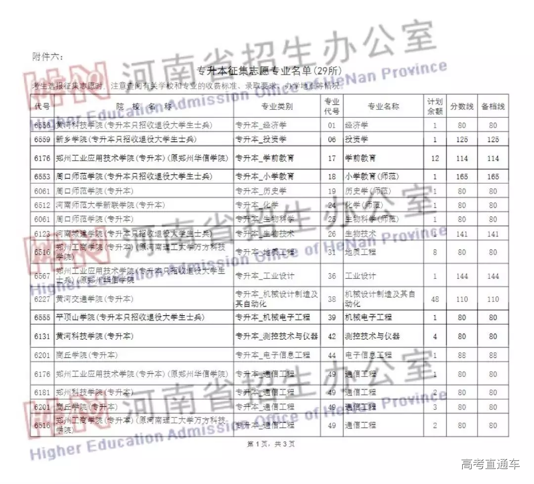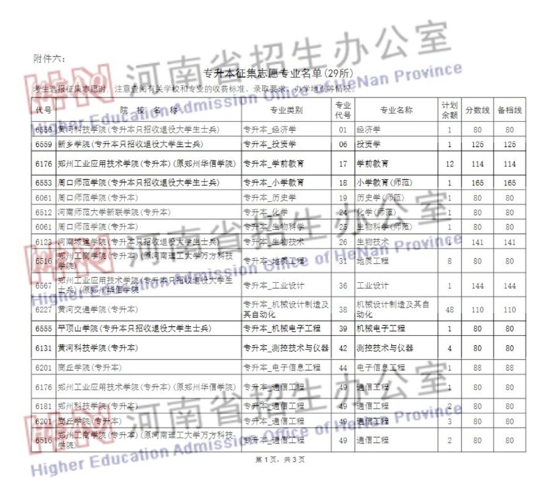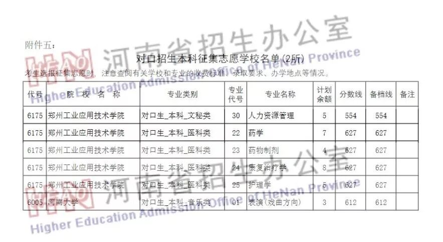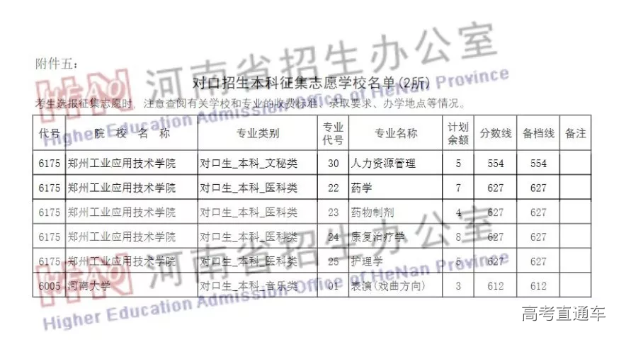 对口招生本科和专升本部分院校征集志愿的通知
