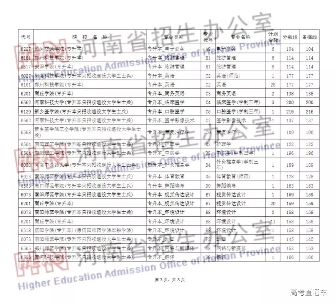 (六)专升本:凡统考成绩达到省定分数线,目前未被任何院校录取的专升本考生,均可补报相应专业的院校志愿。