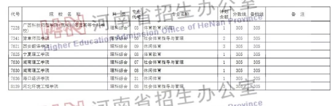 (一)体育类本科专业:凡高考成绩和专业考试成绩达到体育类本科录取控制线,目前未被任何院校录取的体育类考生,均可补报。个别院校降20分备档征集。
