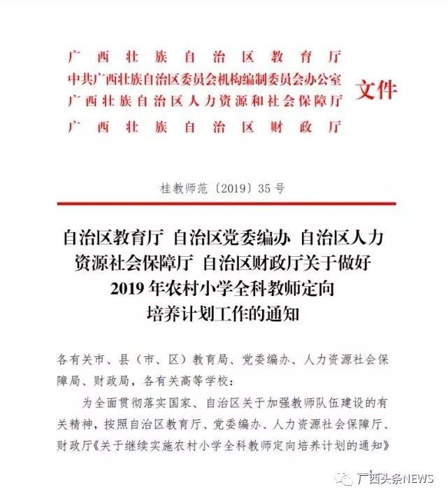 图为广西今年农村小学全科教师定向培养计划工作的通知截图。