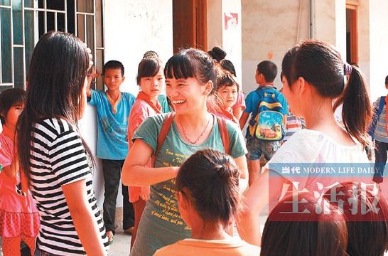 80后女教师课余时间与孩子们交流学习心得。资料图