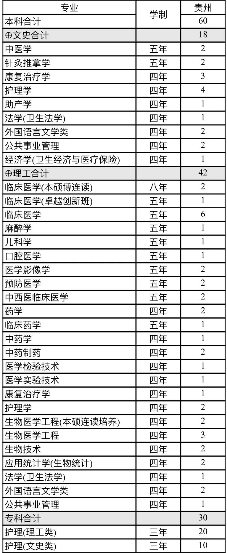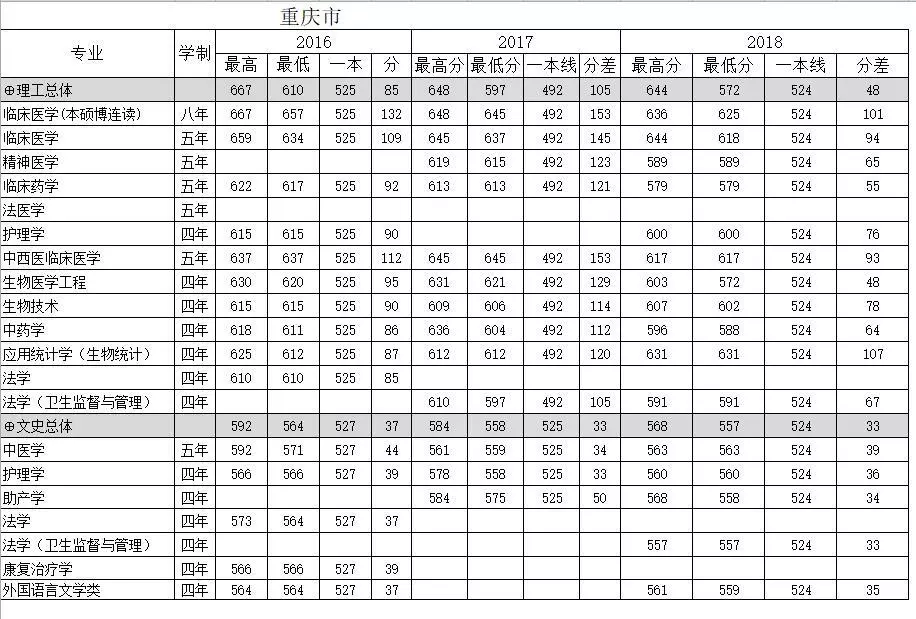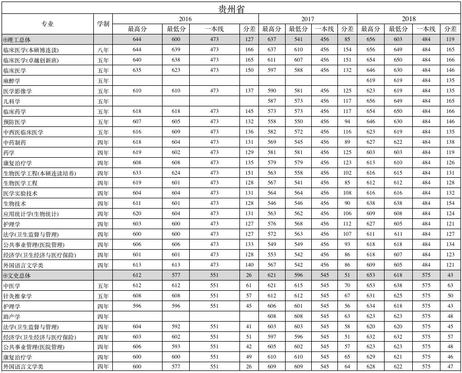 南方医科大学贵州省2016-2018年