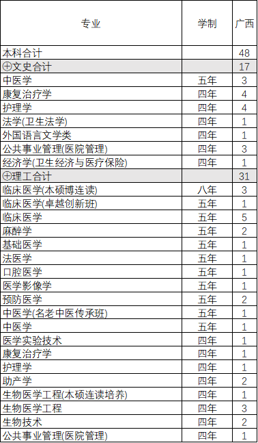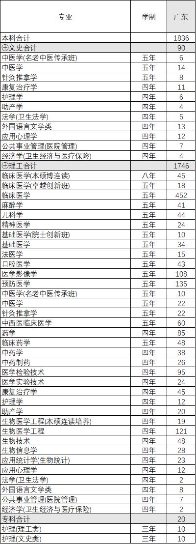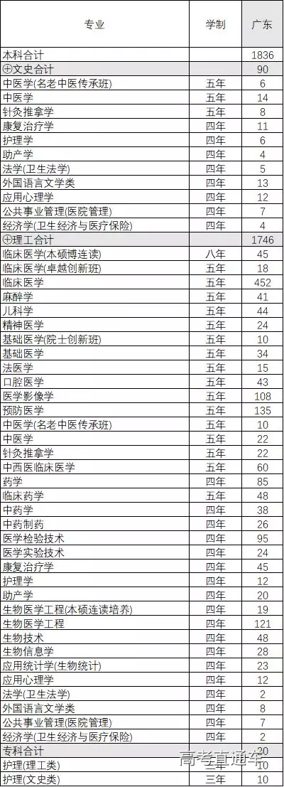 南方医科大学2019年夏季普通高考招生计划