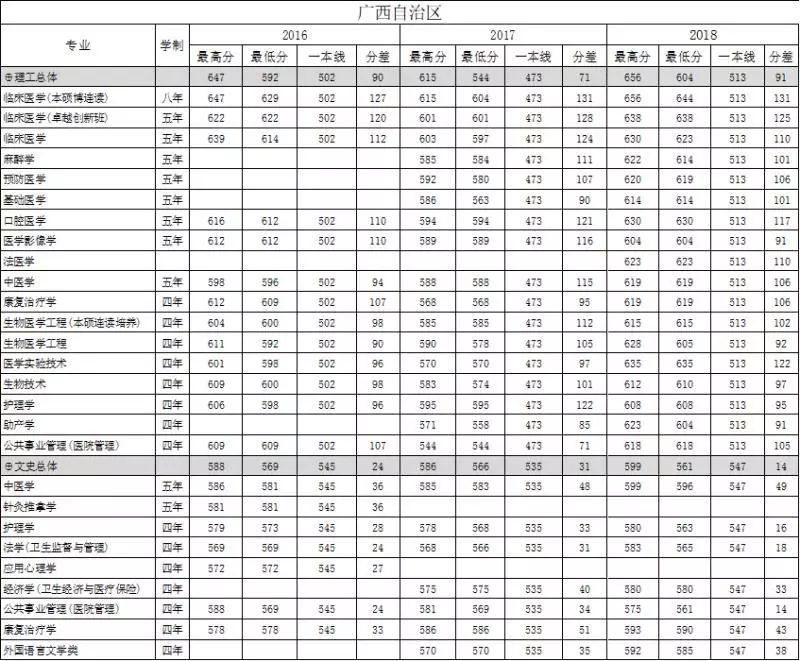 南方医科大学广西自治区2016-2018年