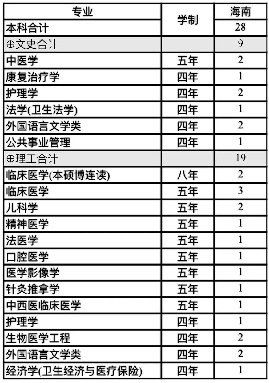 南方医科大学海南省2019年