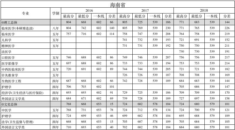 南方医科大学海南省2016-2018年