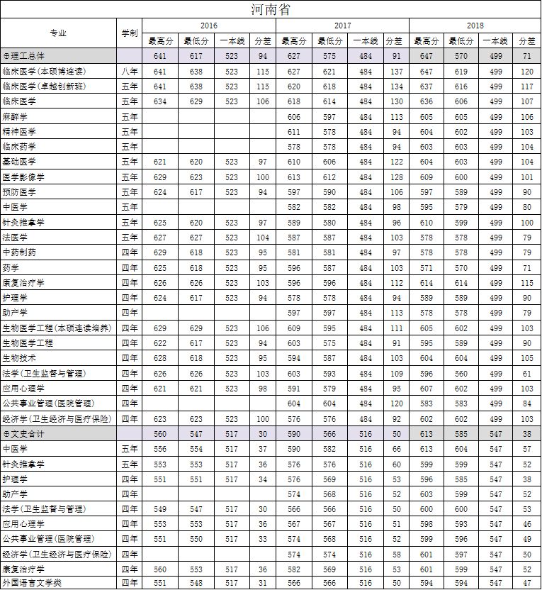 南方医科大学河南省2016-2018年
