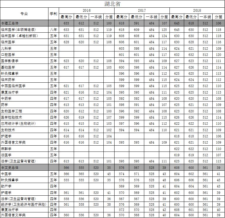 南方医科大学湖北省2016-2018年