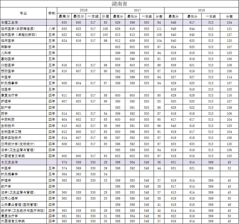 南方医科大学湖南省2016-2018年