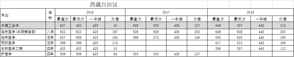 南方医科大学西藏自治区2016-2018年