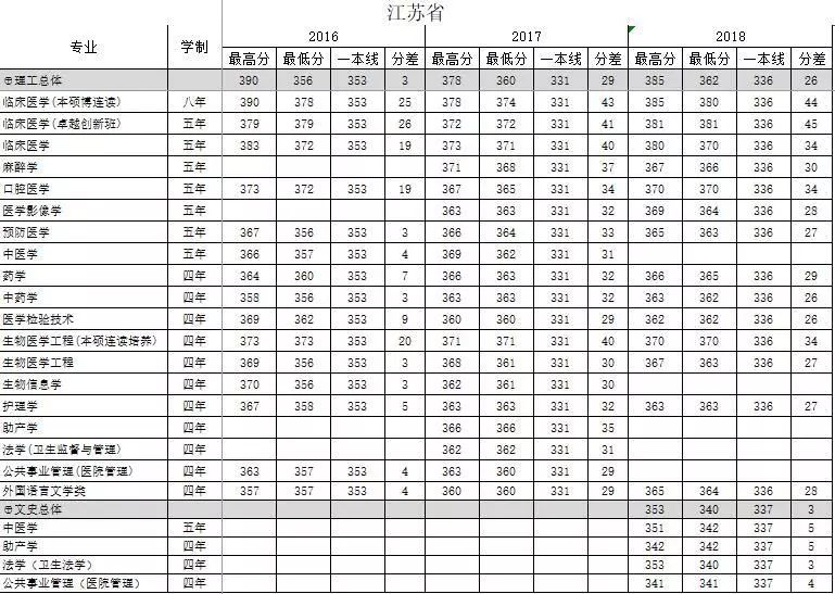 南方医科大学江苏省2016-2018年