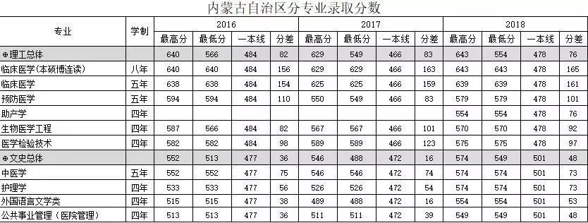 南方医科大学内蒙古自治区2016-2018年