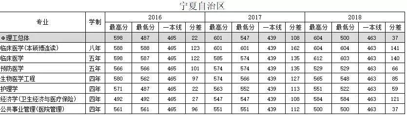 南方医科大学宁夏回族自治区2016-2018年