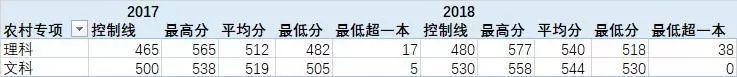 农村专项计划录取分数线一览表