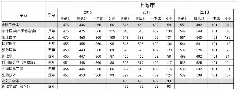 南方医科大学上海市2016-2018年