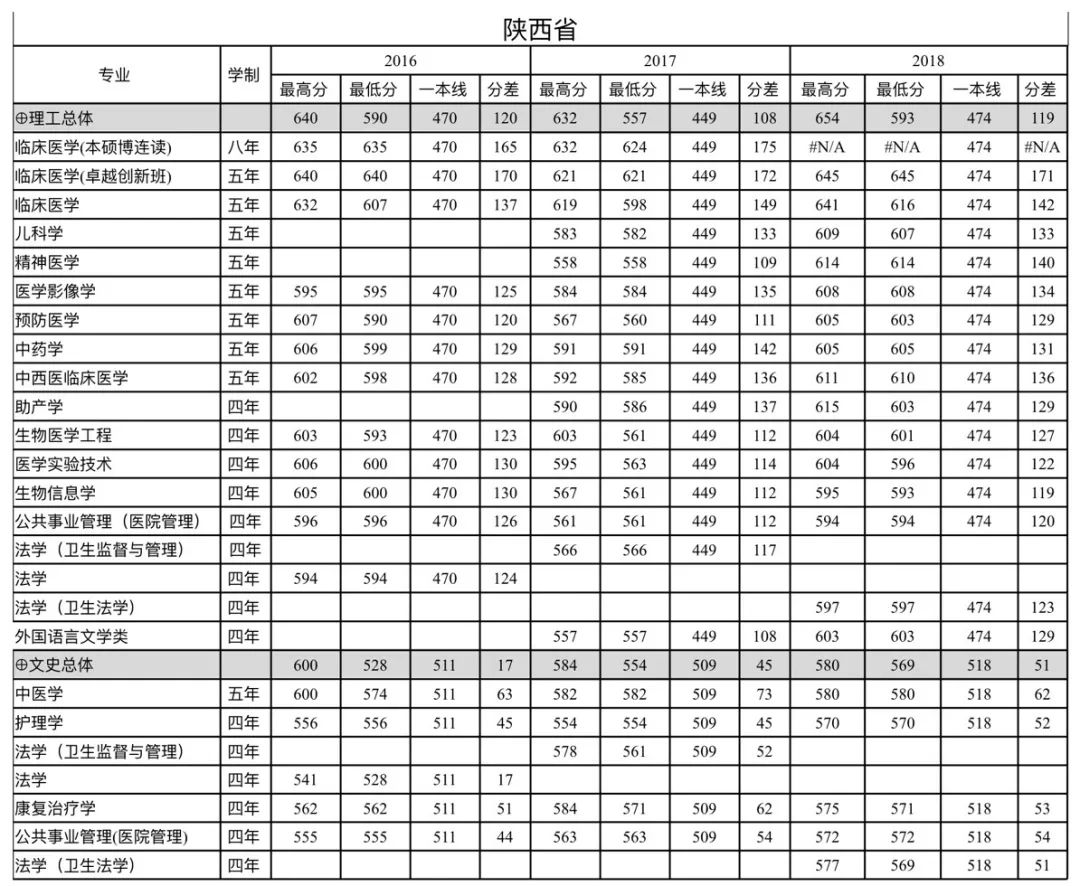 南方医科大学陕西省2016-2018年