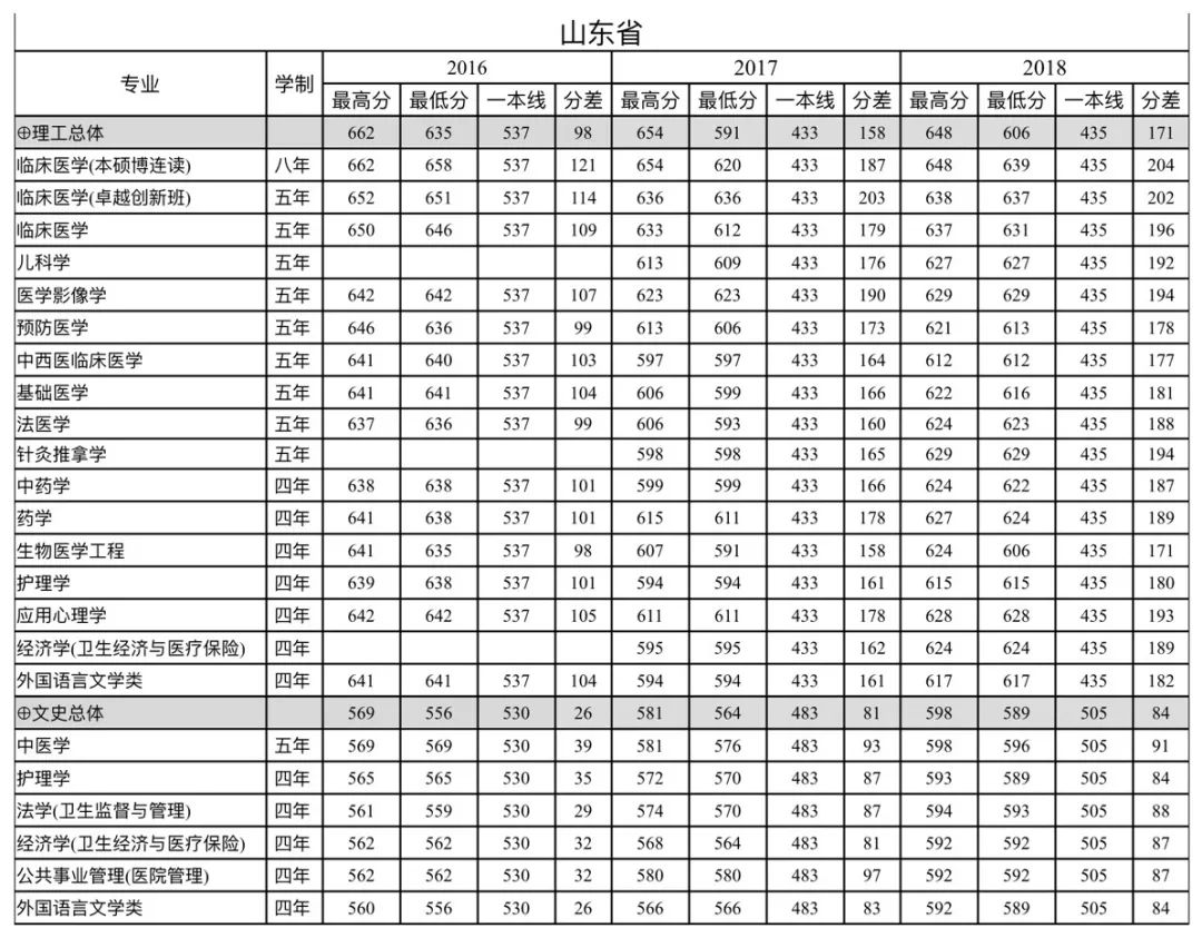 南方医科大学山东省2016-2018年
