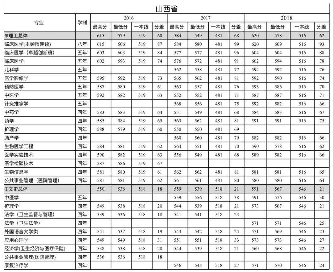 南方医科大学山西省2016-2018年
