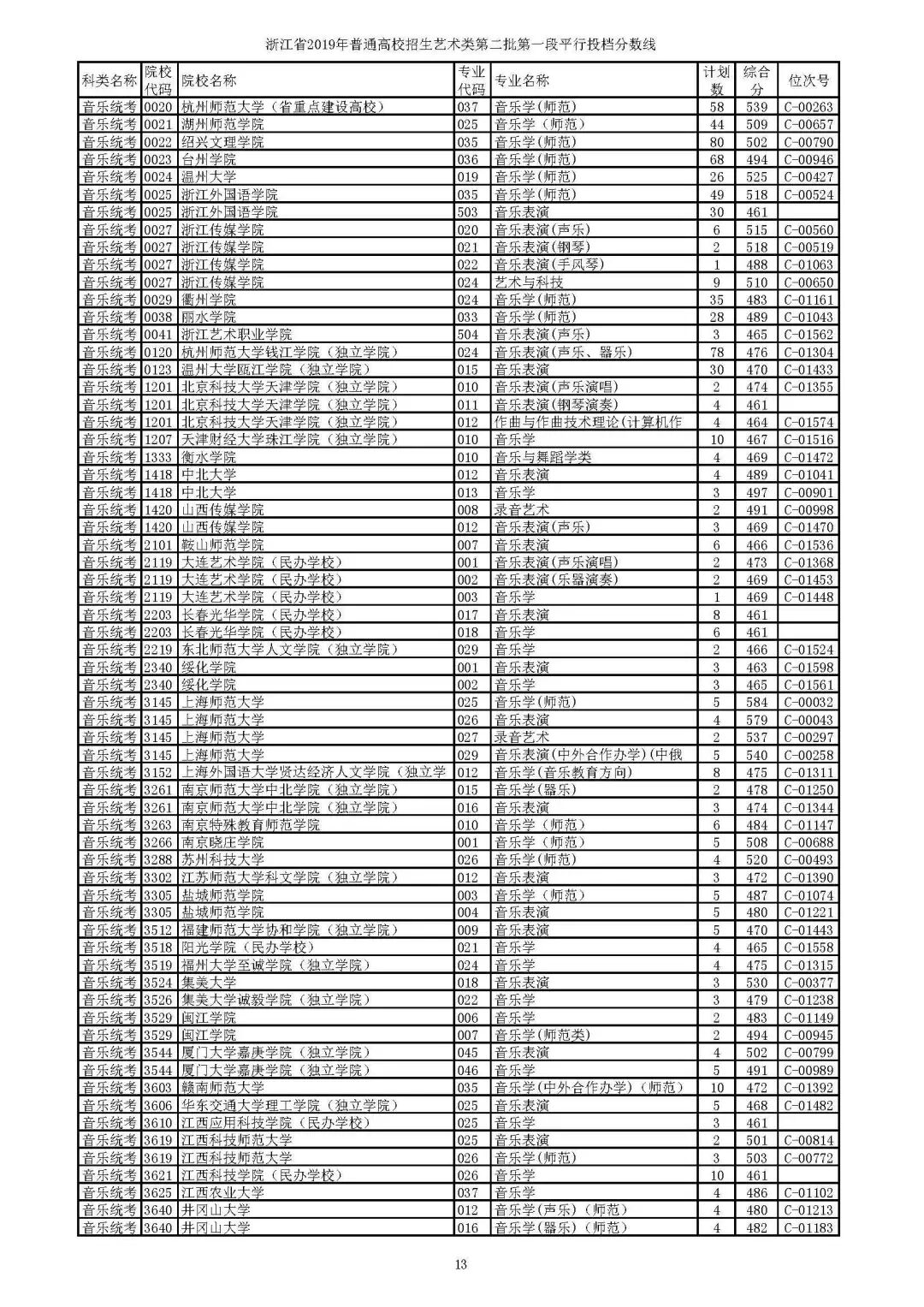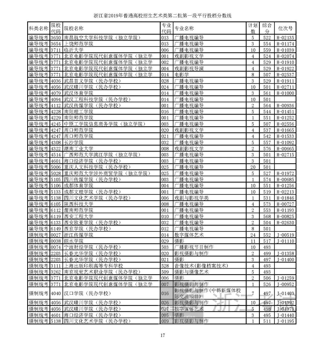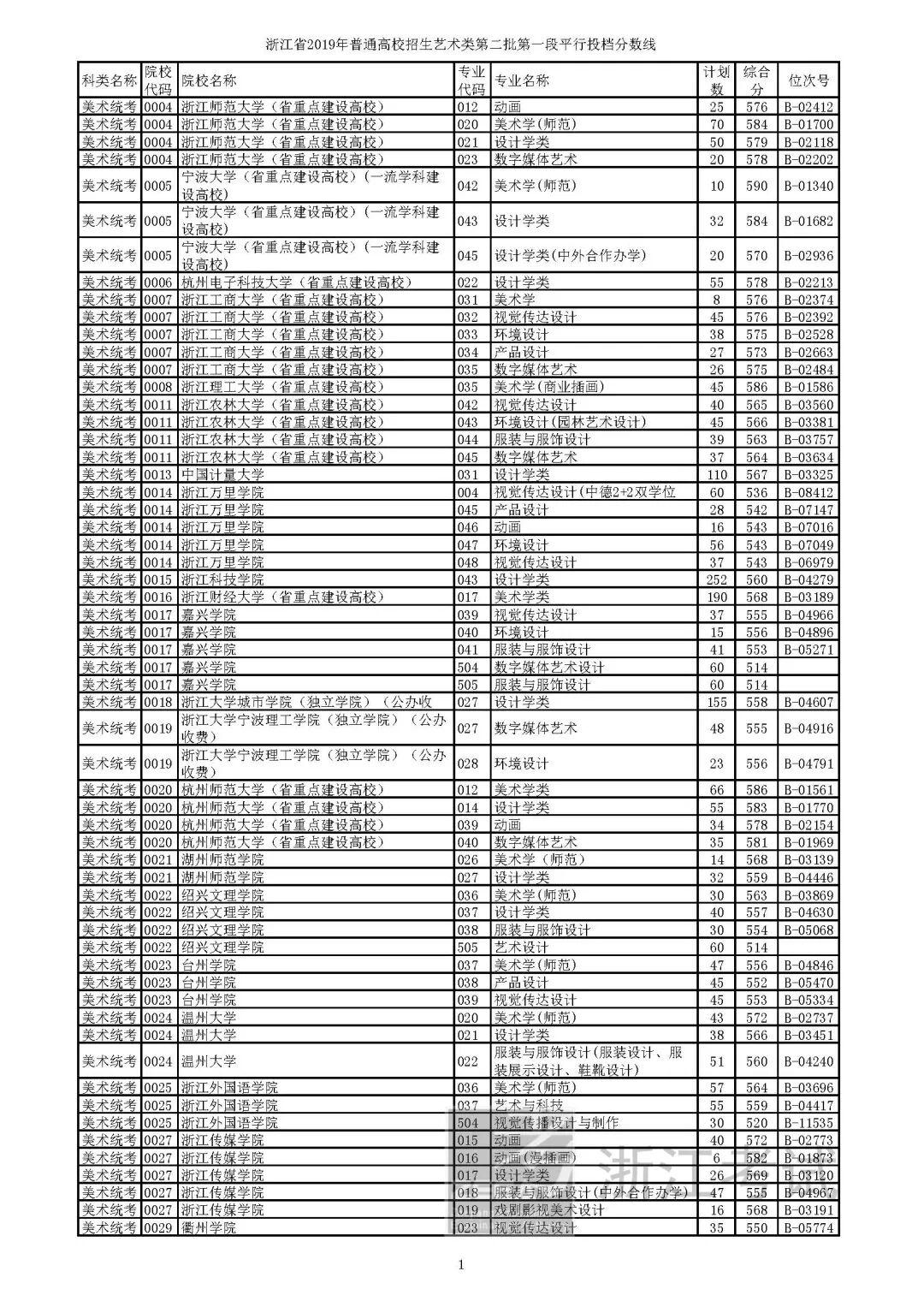 刚刚,2019浙江高考艺体类平行志愿首段投档线揭晓