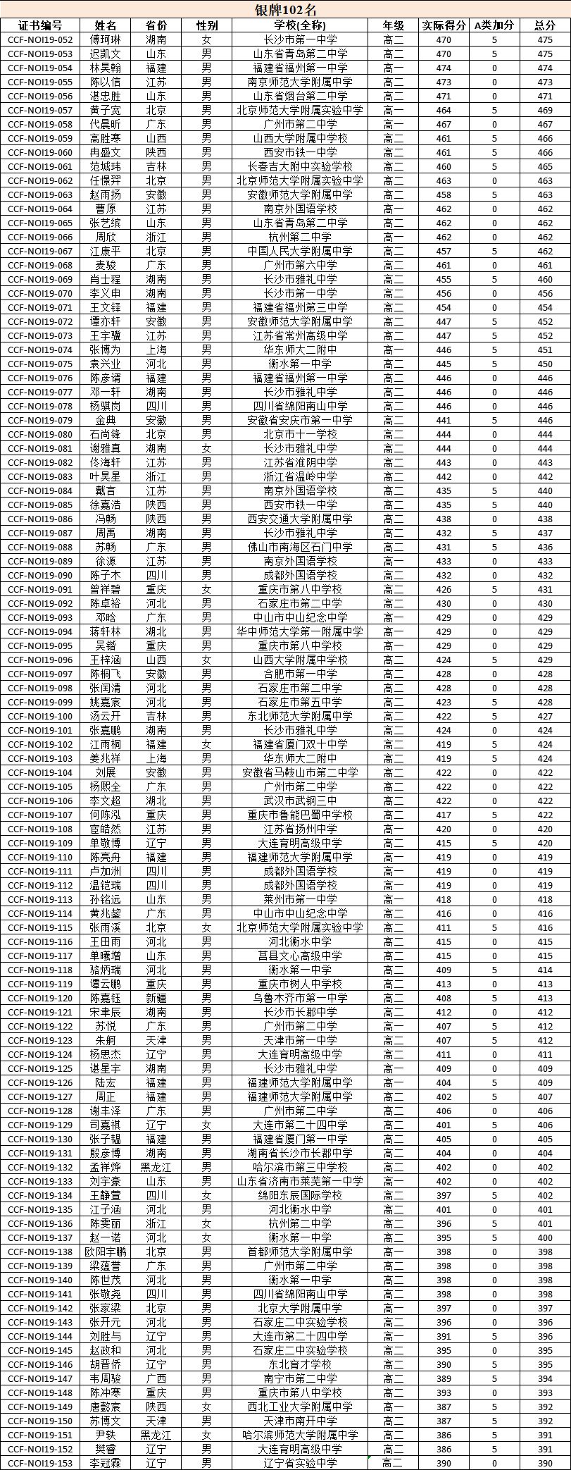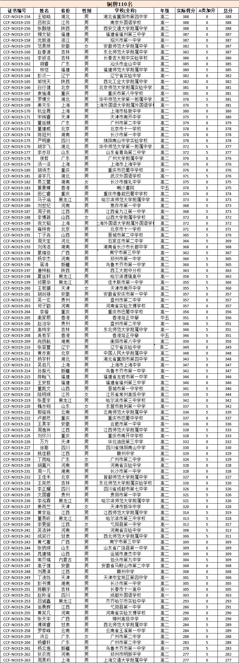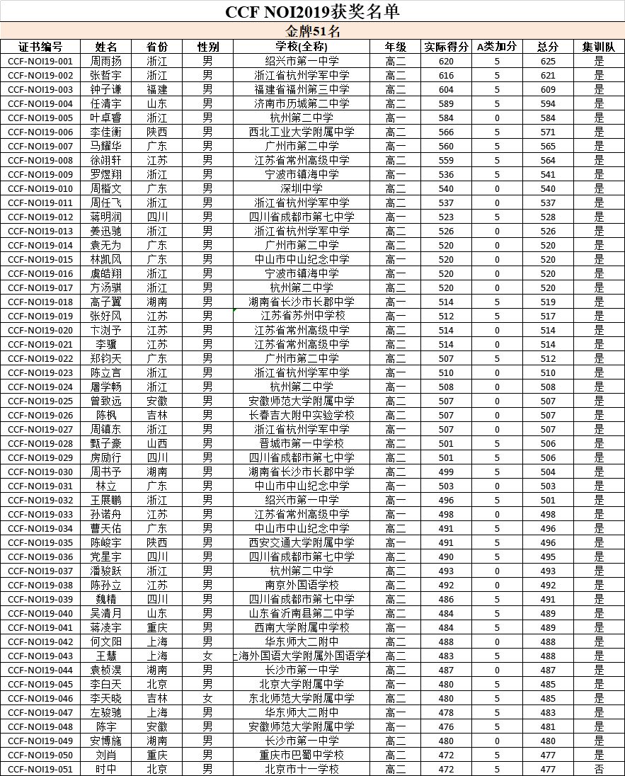 请获奖选手仔细核对本人信息(学校需填写全称,年级为2019年暑假前所就读年级)。如发现信息有误,请汇总至本省特派员处,各省特派员以省为单位于2019年8月1日12点前将正确信息发送至NOI竞赛办公室(noi@ccf.org.cn)进行修正。
