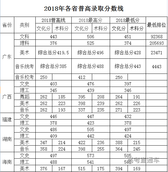 广东海洋大学寸金学院2018年各省普高录取分数线