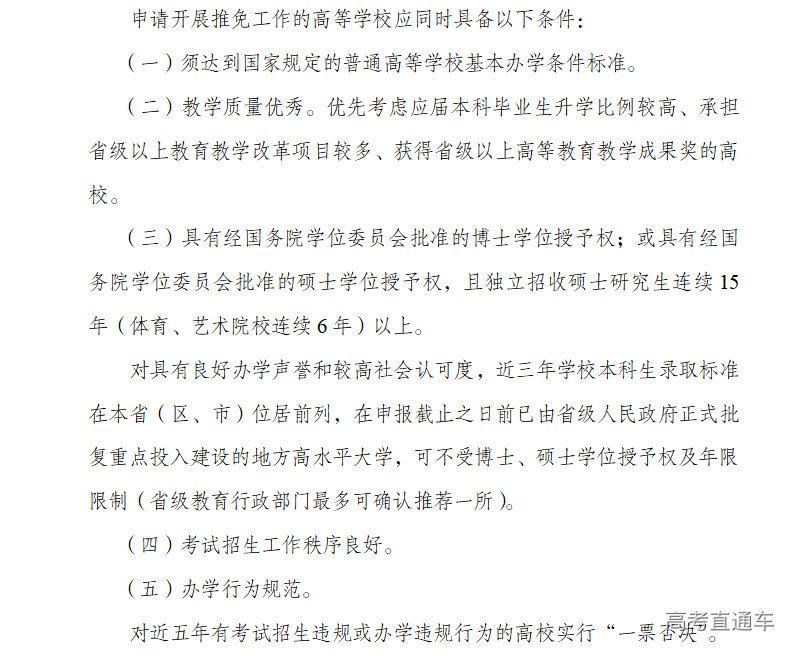 2017年,《教育部办公厅关于印发〈新增推荐优秀应届本科毕业生免试攻读研究生普通高等学校申报确认办法〉的通知》(以下简称《通知》)规定,新增推免高校需符合以下条件: