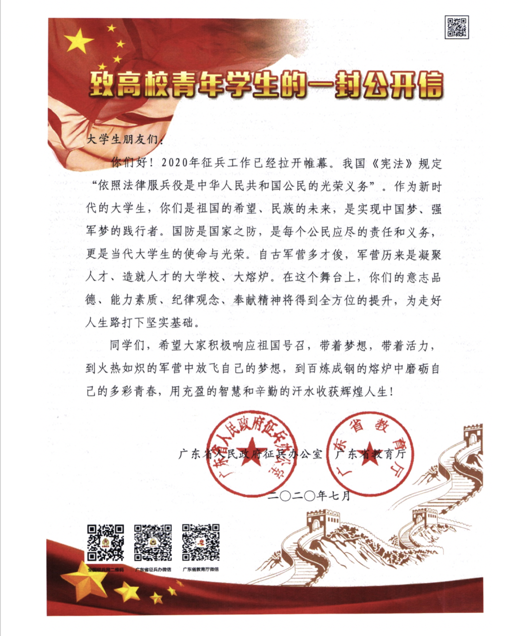 广东省公民兵役证(男生)